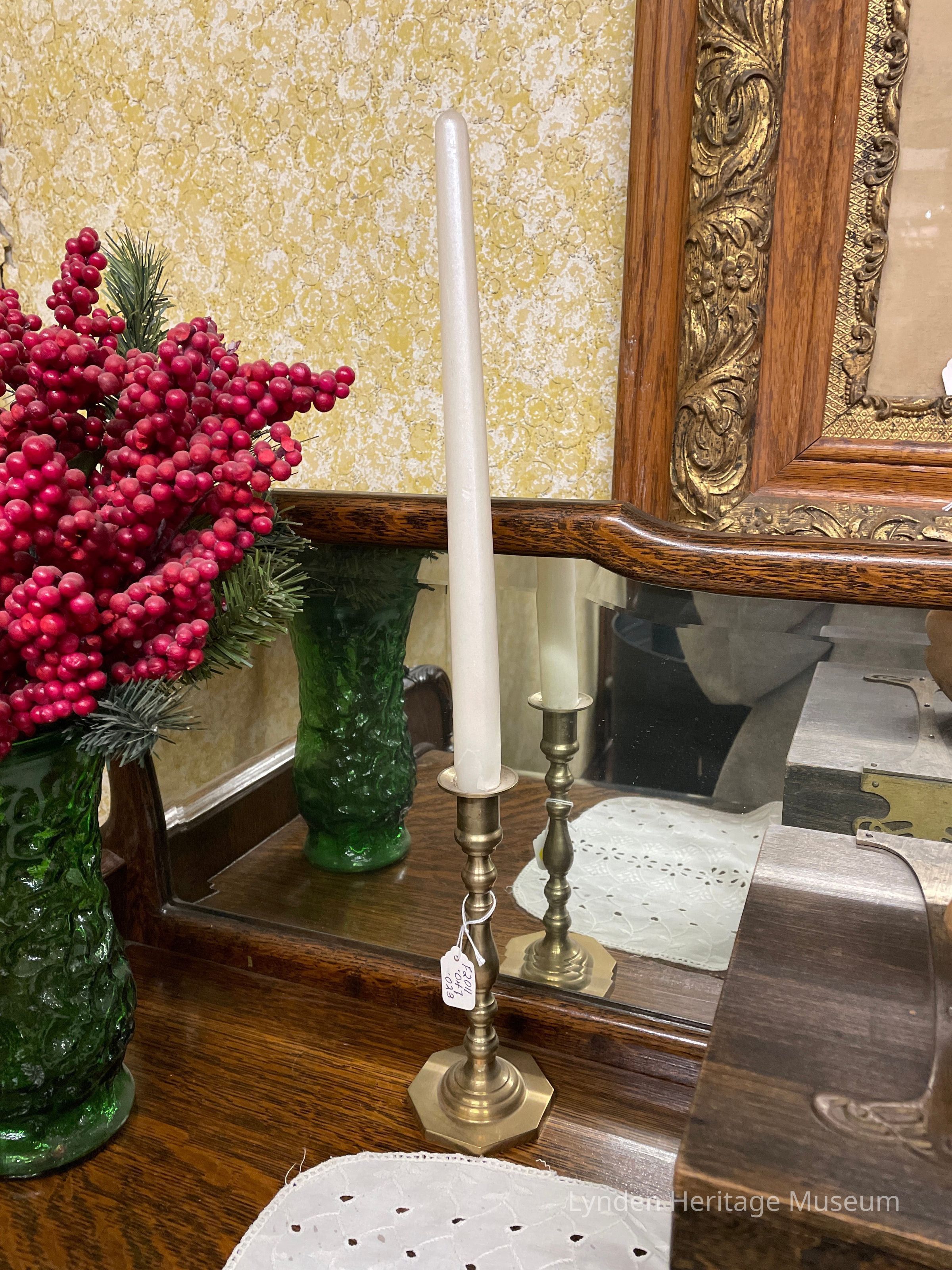 Gold candle stick w/ candle