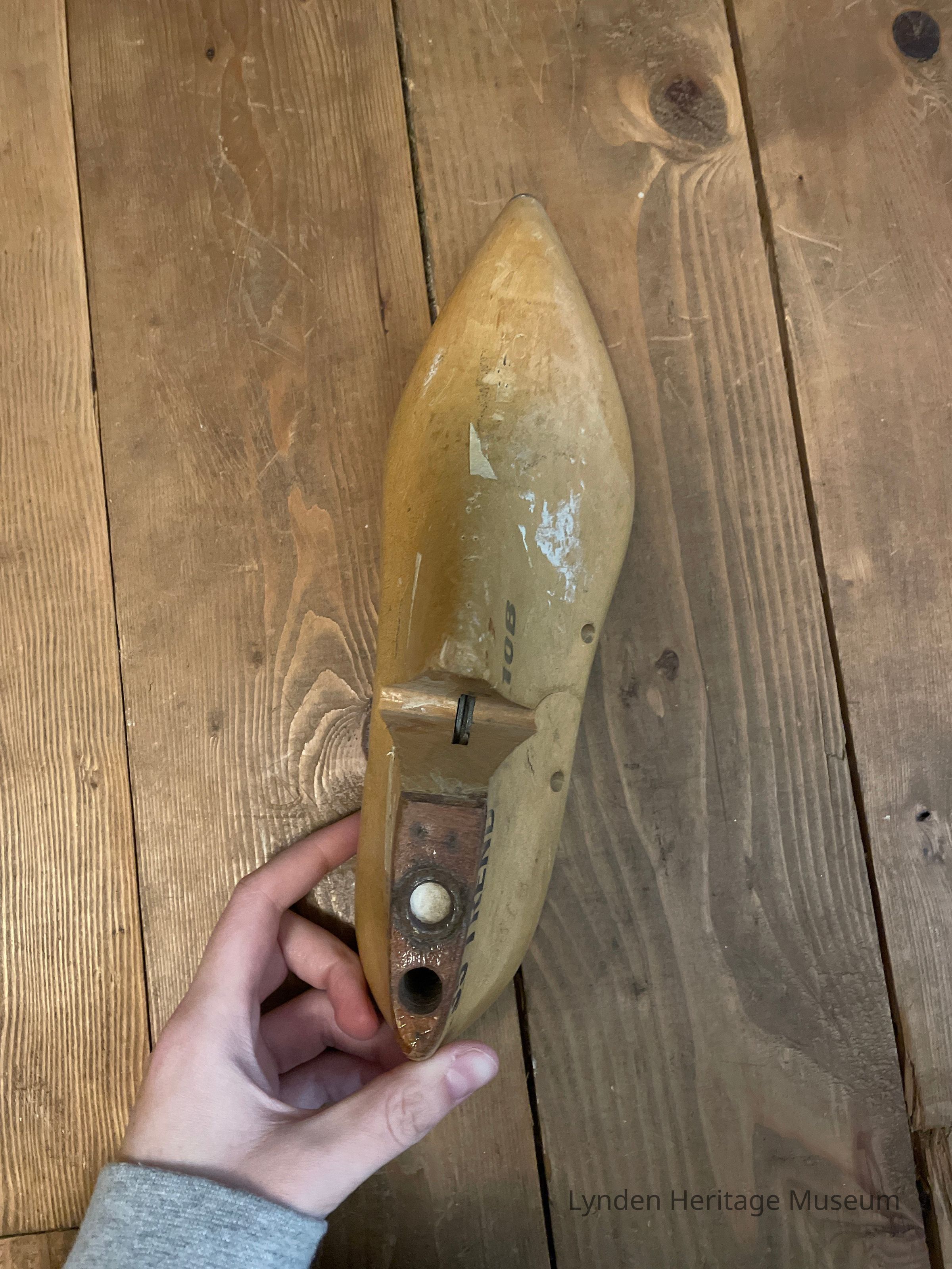 Wood, metal bottom, pointed toe (larger/men’s?)