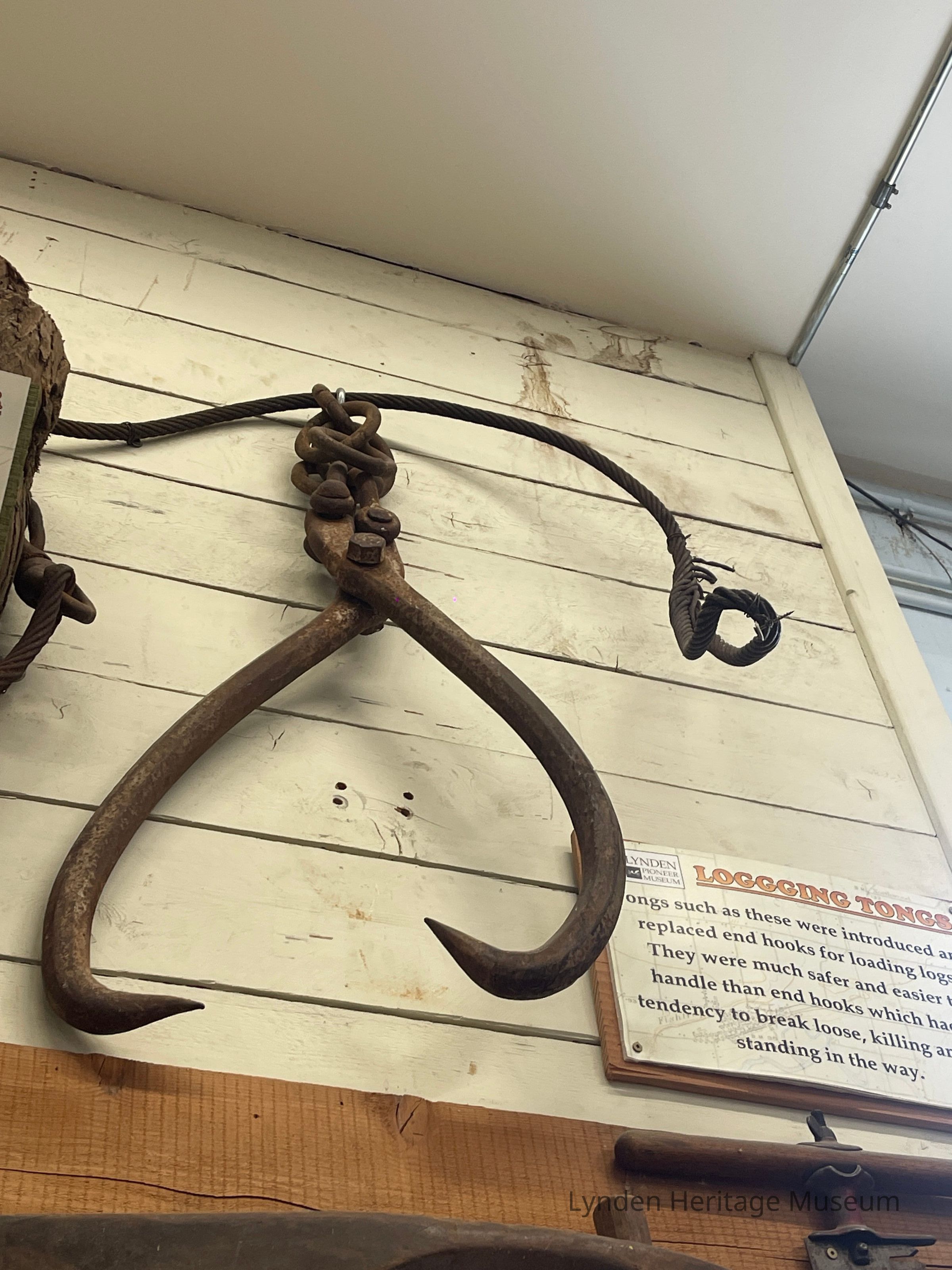 These tongs attached onto each end of a log, allowing the log to be loaded onto a rail car.