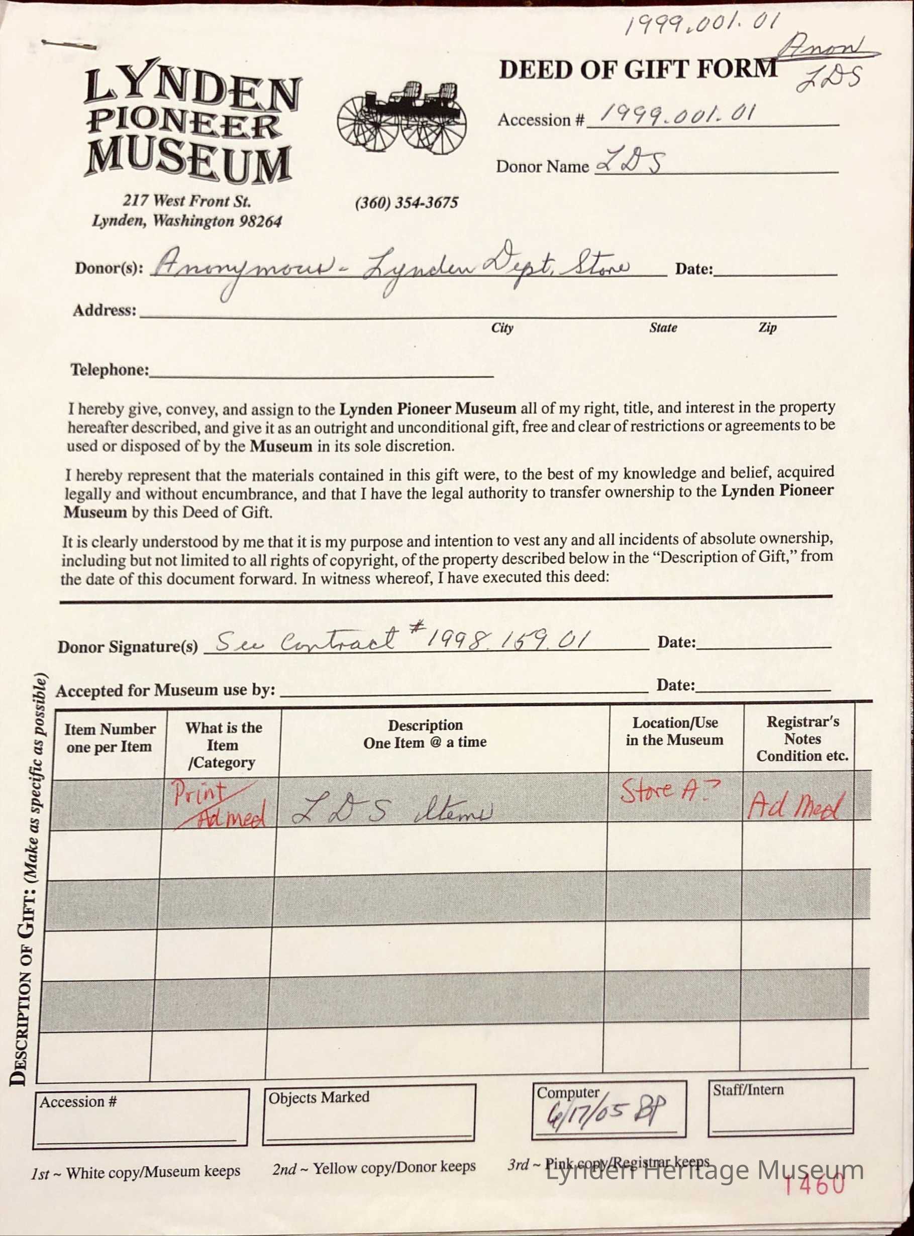 Gifted by Anonymous- Lynden Department Store; See Contract 1998.159