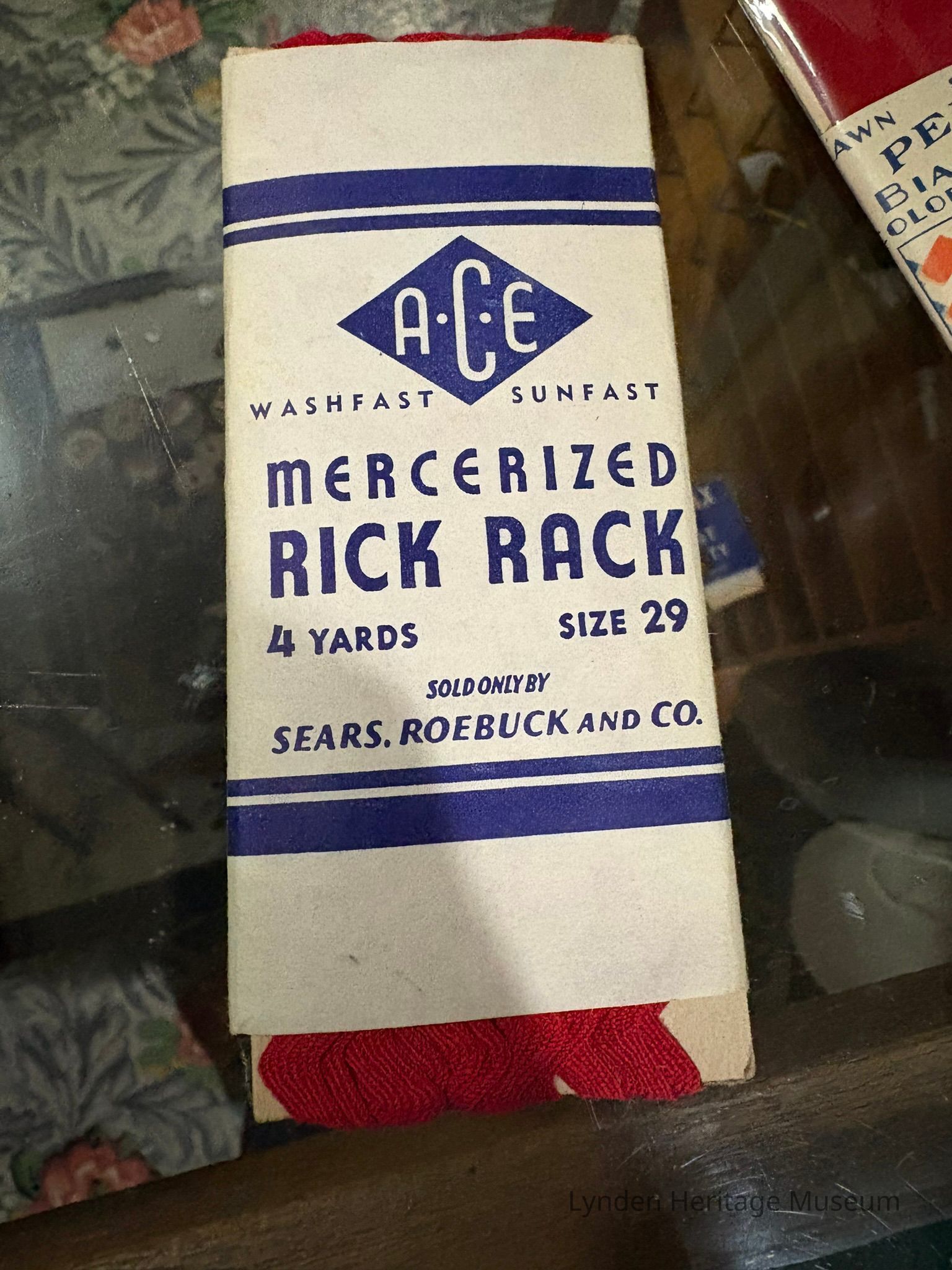 Red fabric in zigzag pattern. Four yards. Size 29.