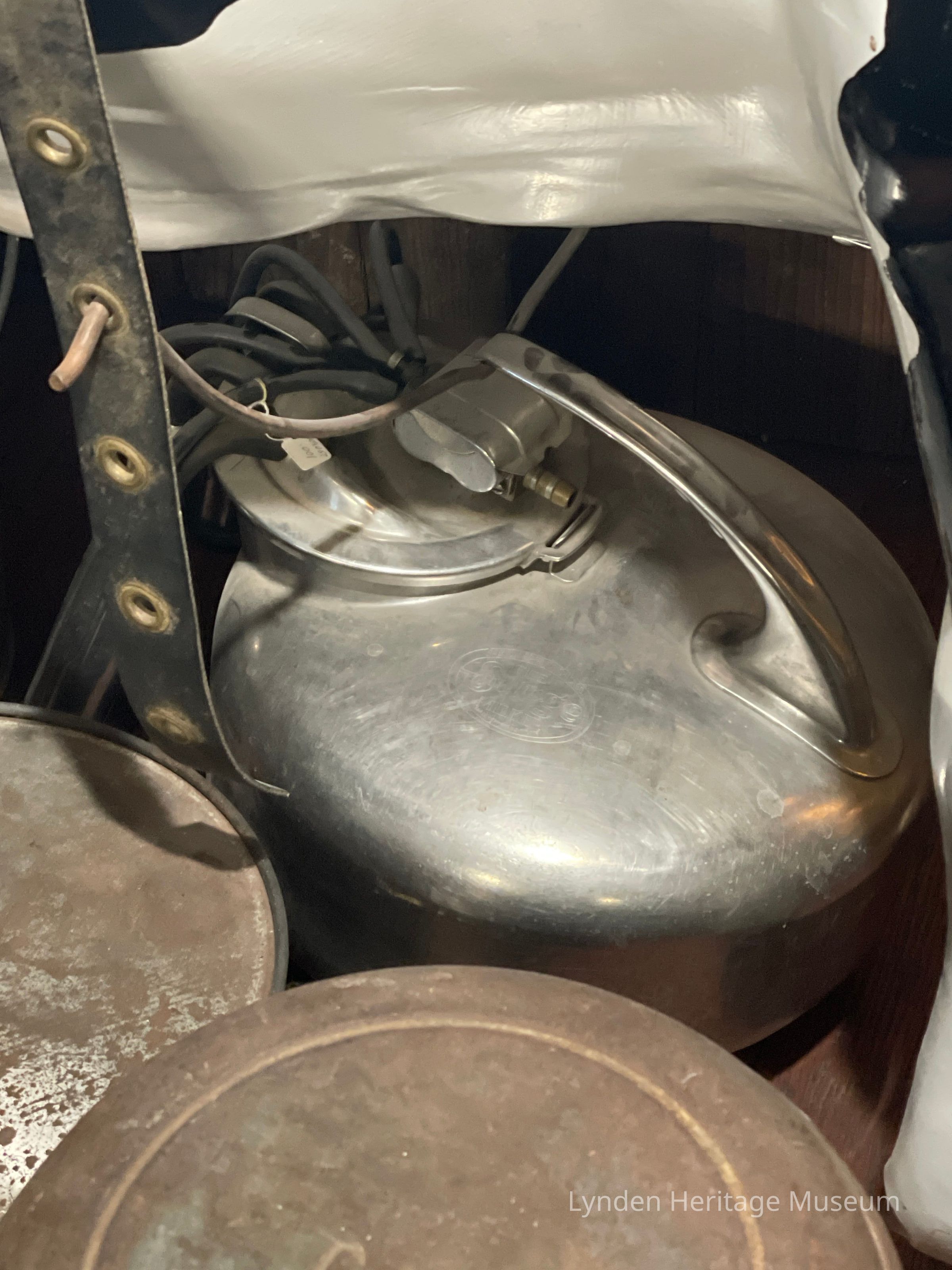 Milker has round tank and four hoses, kit has tape rolls in a metal caseCategory