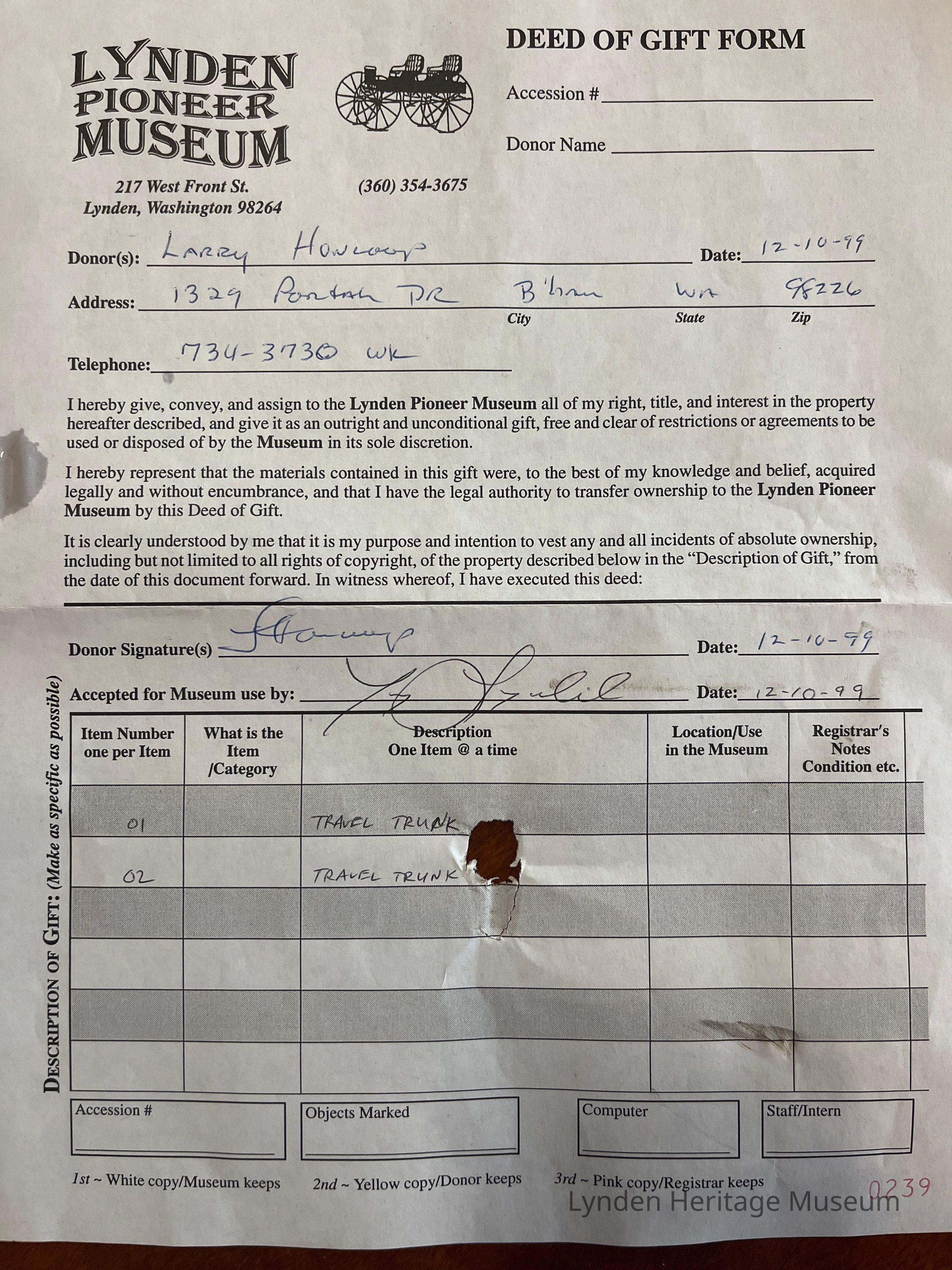 Donated by Larry Honcoop