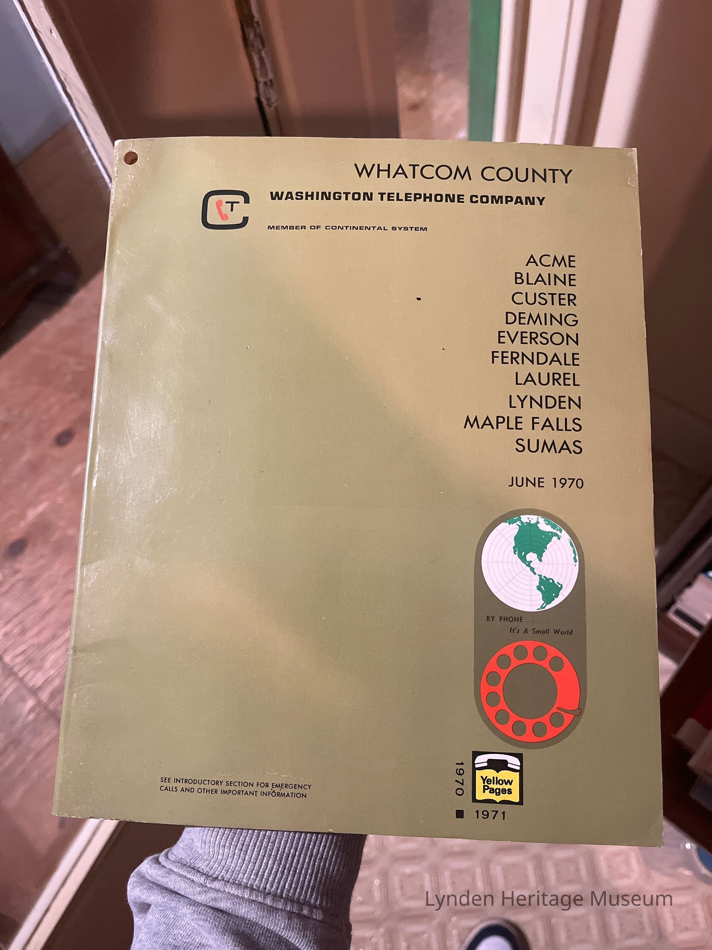 Gifted by Vernon Olin Washington telephone company directory- June 1970
