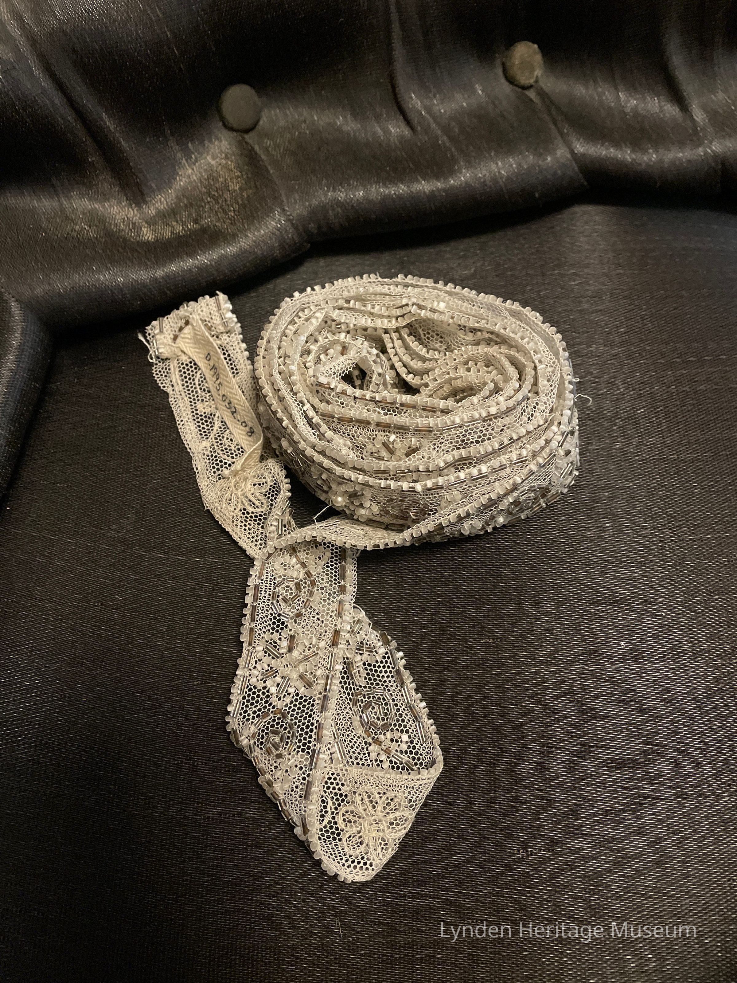 White and Silver Beaded Lace Strip