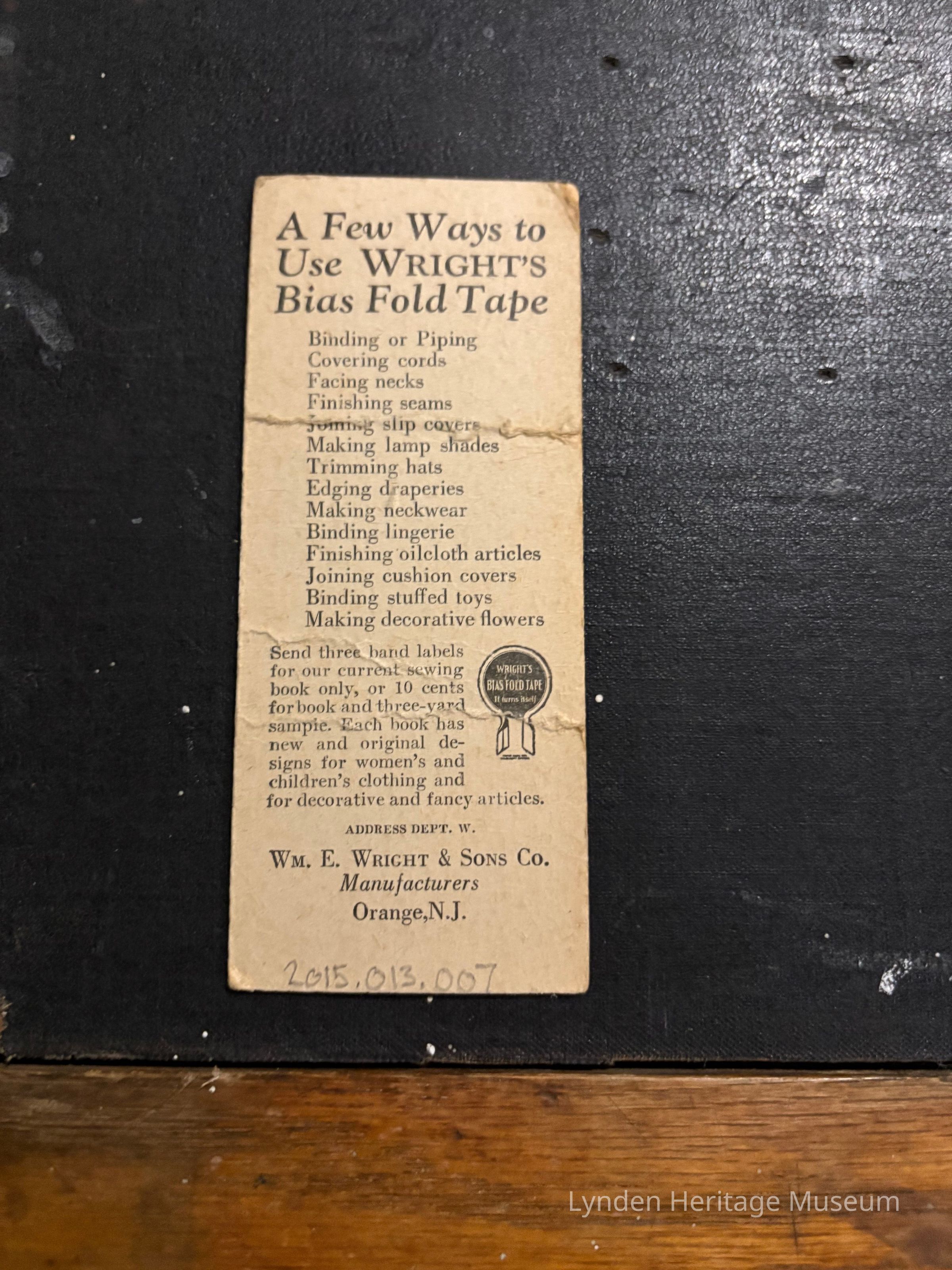 Wright Card- “Ways to Use Bias Tape”