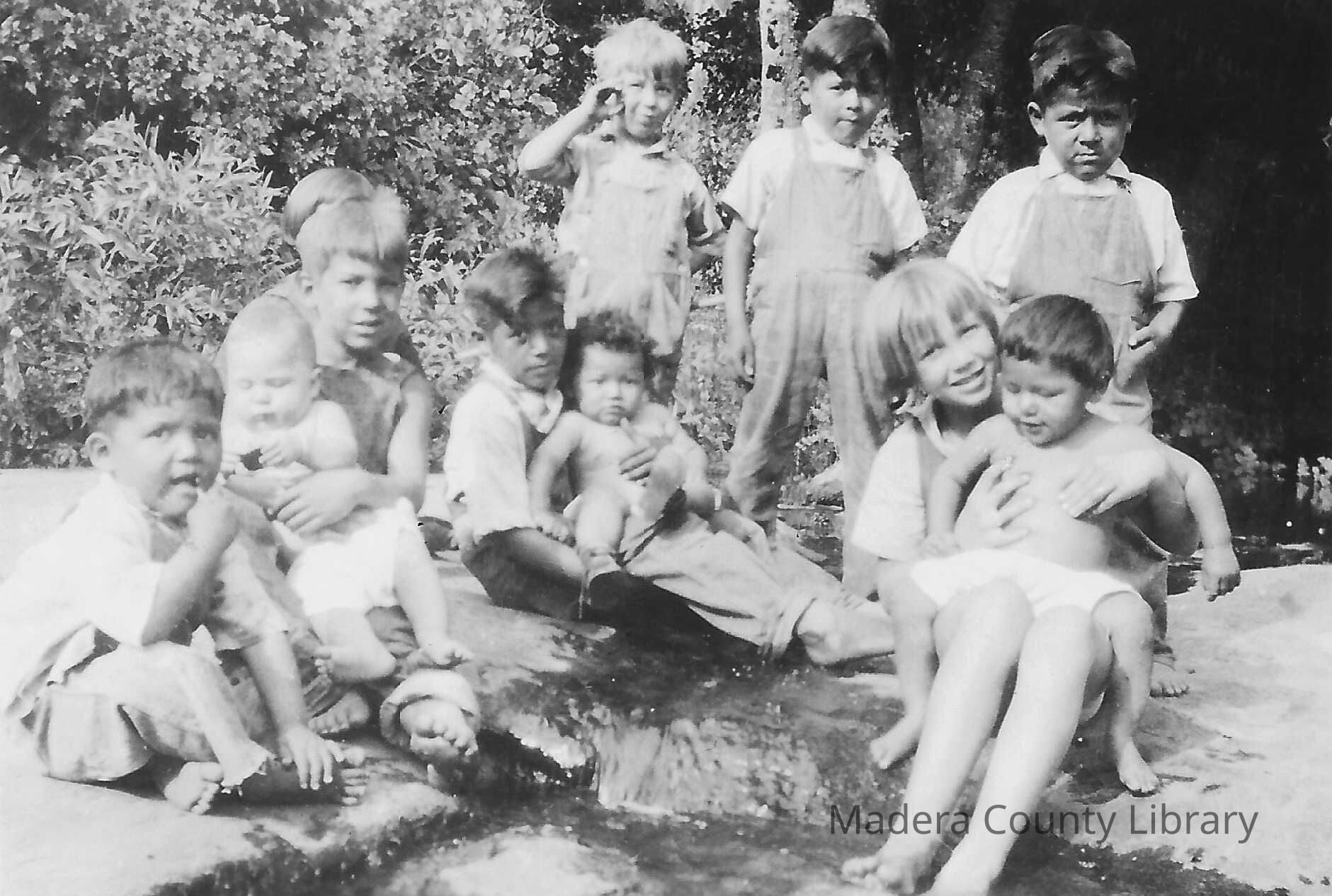The little boys in overalls are Lee and Mae Sherman's Boys; Lee, Kendrick Eldren and Will. The other children are unidentified and are in several photos from Mae Polkenhorn Sherman's Scrapbook Collection.Photograph Details