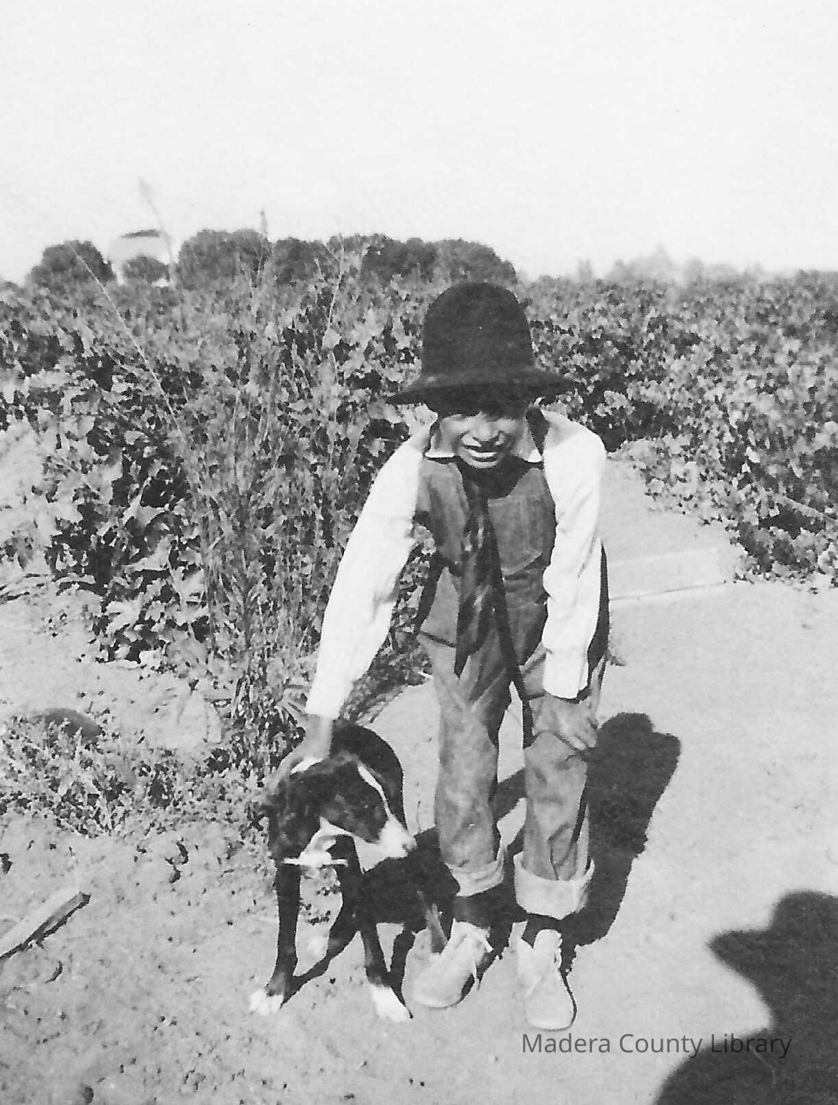 In this photo is a young, North Fork Mono boy, who is working in one of the agriculture fields of Madera County. Many Indian families would work as migrant farm workers in the summer picking grapes..Photograph Details