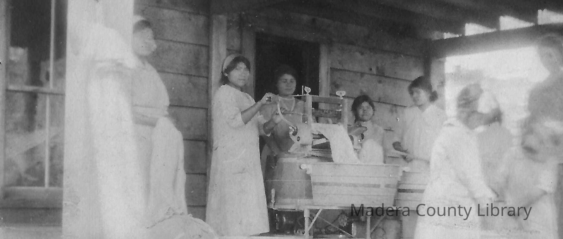 Pictured are girls washing clothes at the Presbyterian Indian Mission located in North Fork, Madera County, CA.Photograph Details