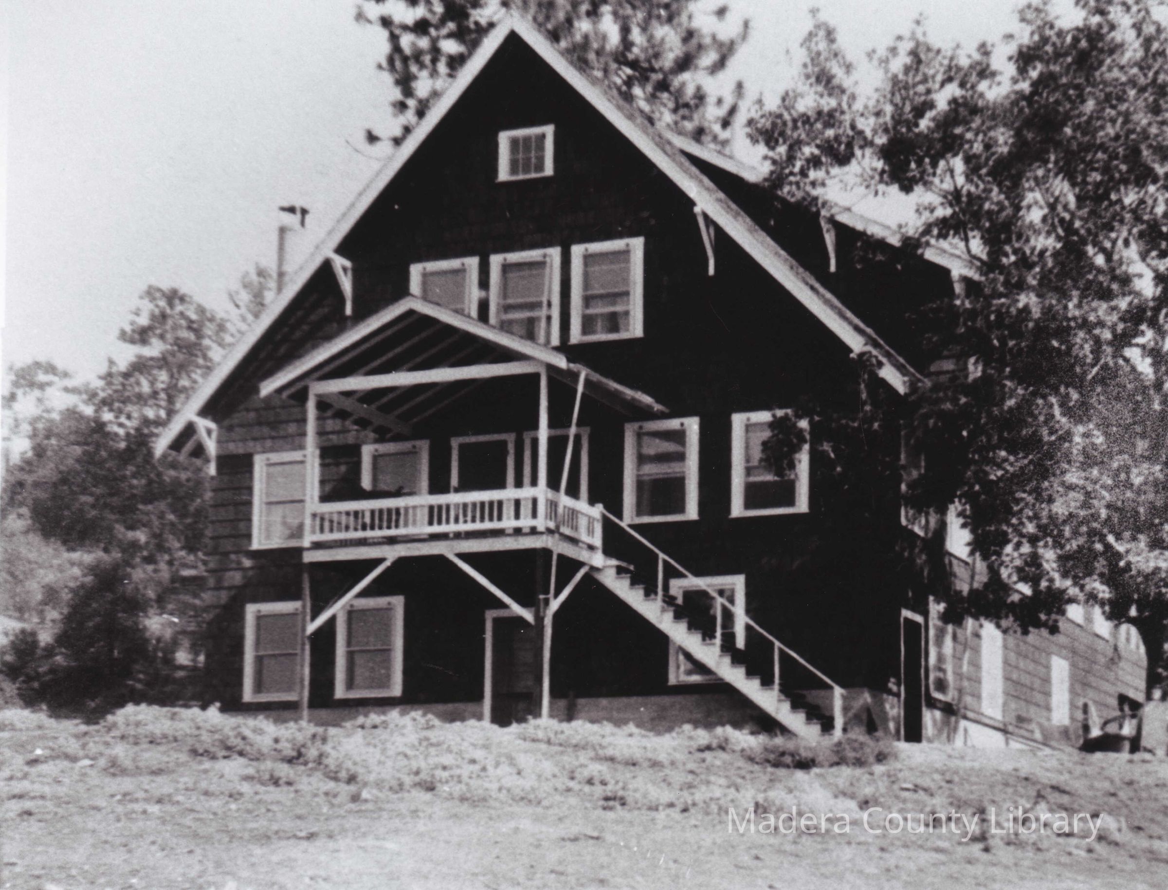 The Girls Dormitory located at the Presbyterian Indian Mission located in North Fork, Madera County, California. According to the Presbyterian Church Historical Society Collection, located in the California Room at the Madera Library, the Dormitory was constructed in 1933. The first floor was the Dining Room, Kitchen and Dining Room Supervisor's apartments. On the second floor was; four dressing rooms, dormitory, sanitary unit, recreation room, isolation room and supervisor's apartment. The third floor had several rooms and dormitory and the basement contained the furnace, laundry unit and a food storage unit.Photograph Details