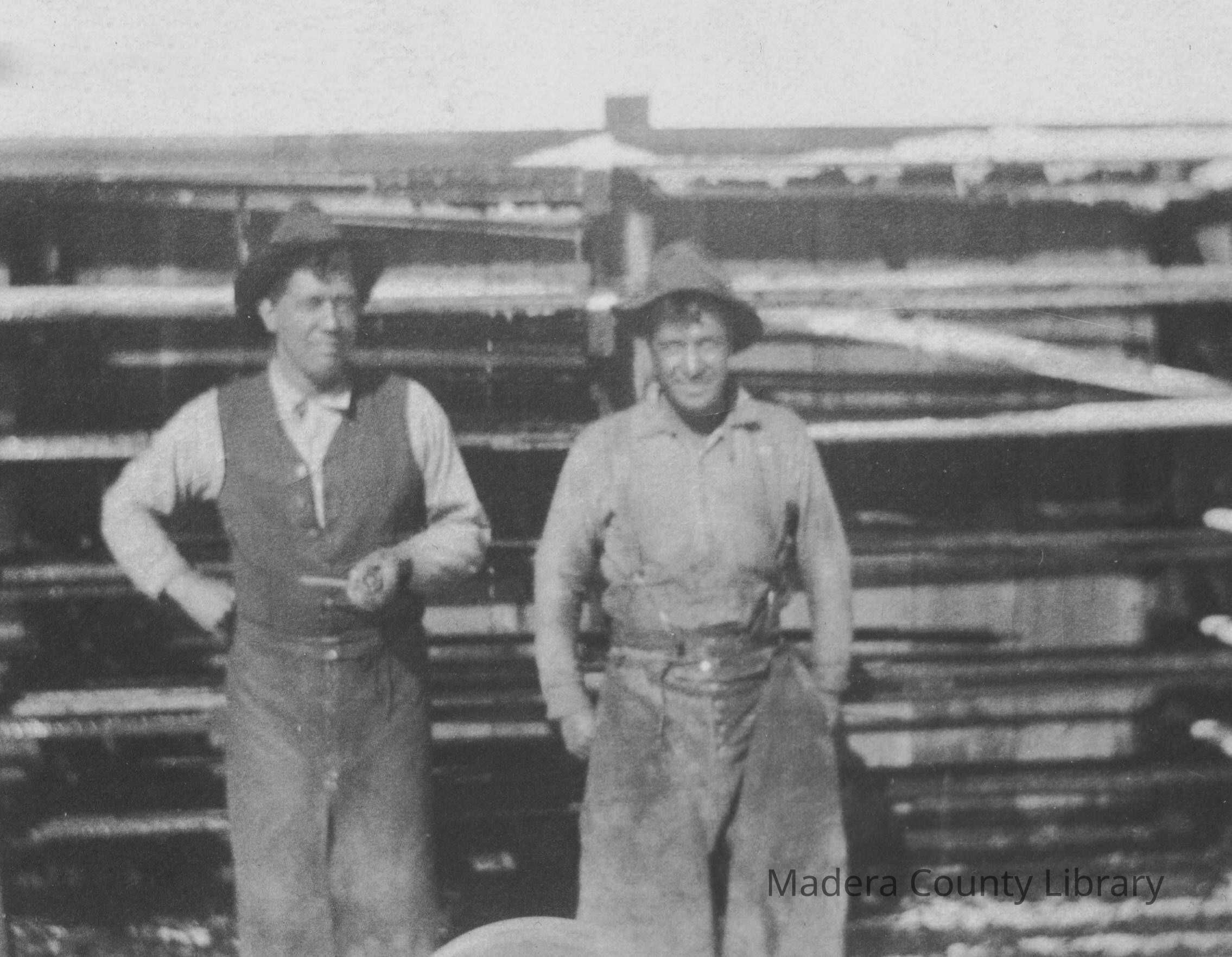 Left to right are Crawford Coleman and Charles Coleman at the North Fork Lumber Mill in North Fork, Madera County.Photograph Details