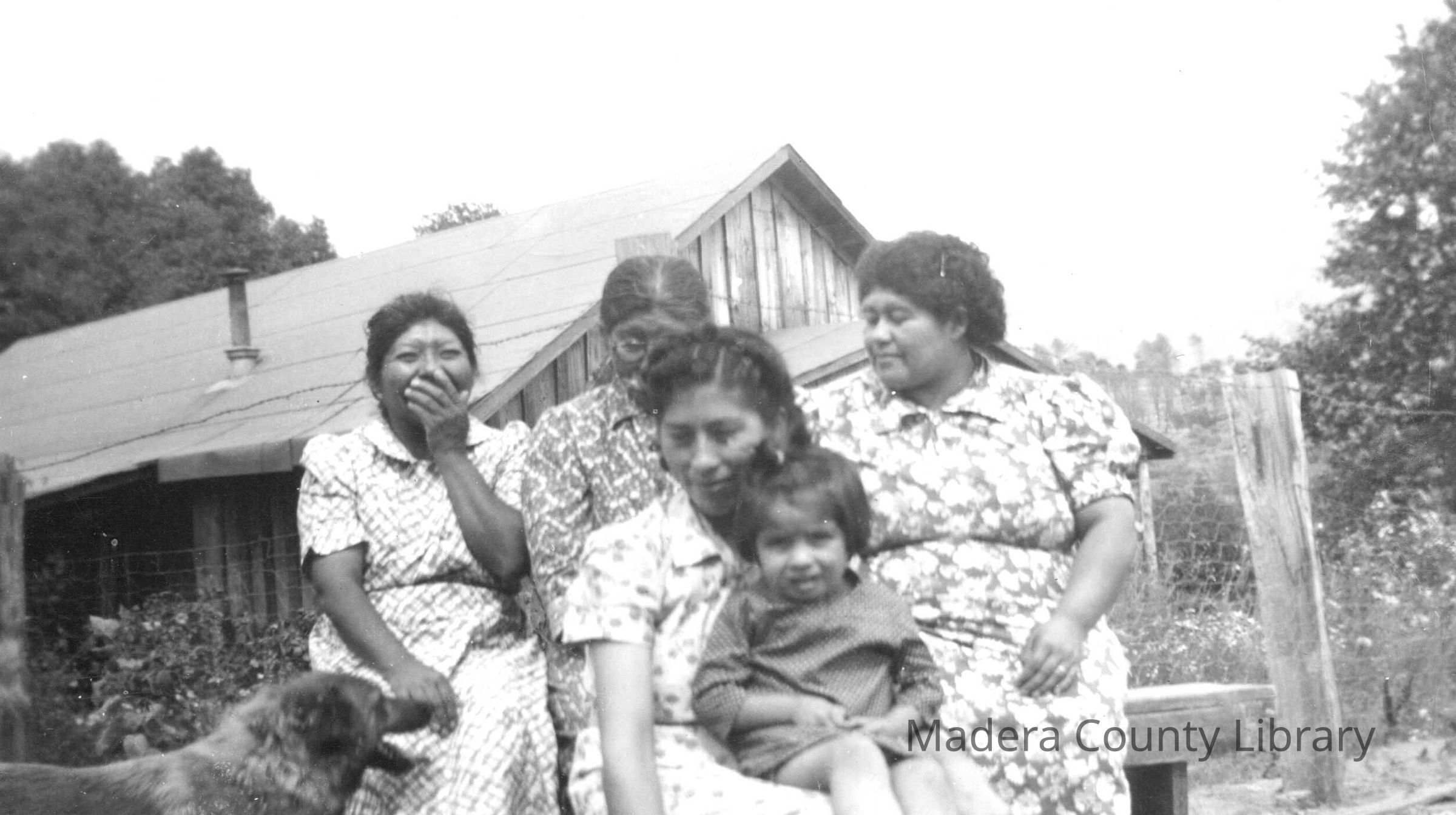 Back Row, Left to Right: Emma Washington, Jennie Joaquin-Washington and Rosie Washington. In front is Rita Gonzales holding her niece, Shirley Chenot. Photo was taken in June of 1938.Photograph Details
