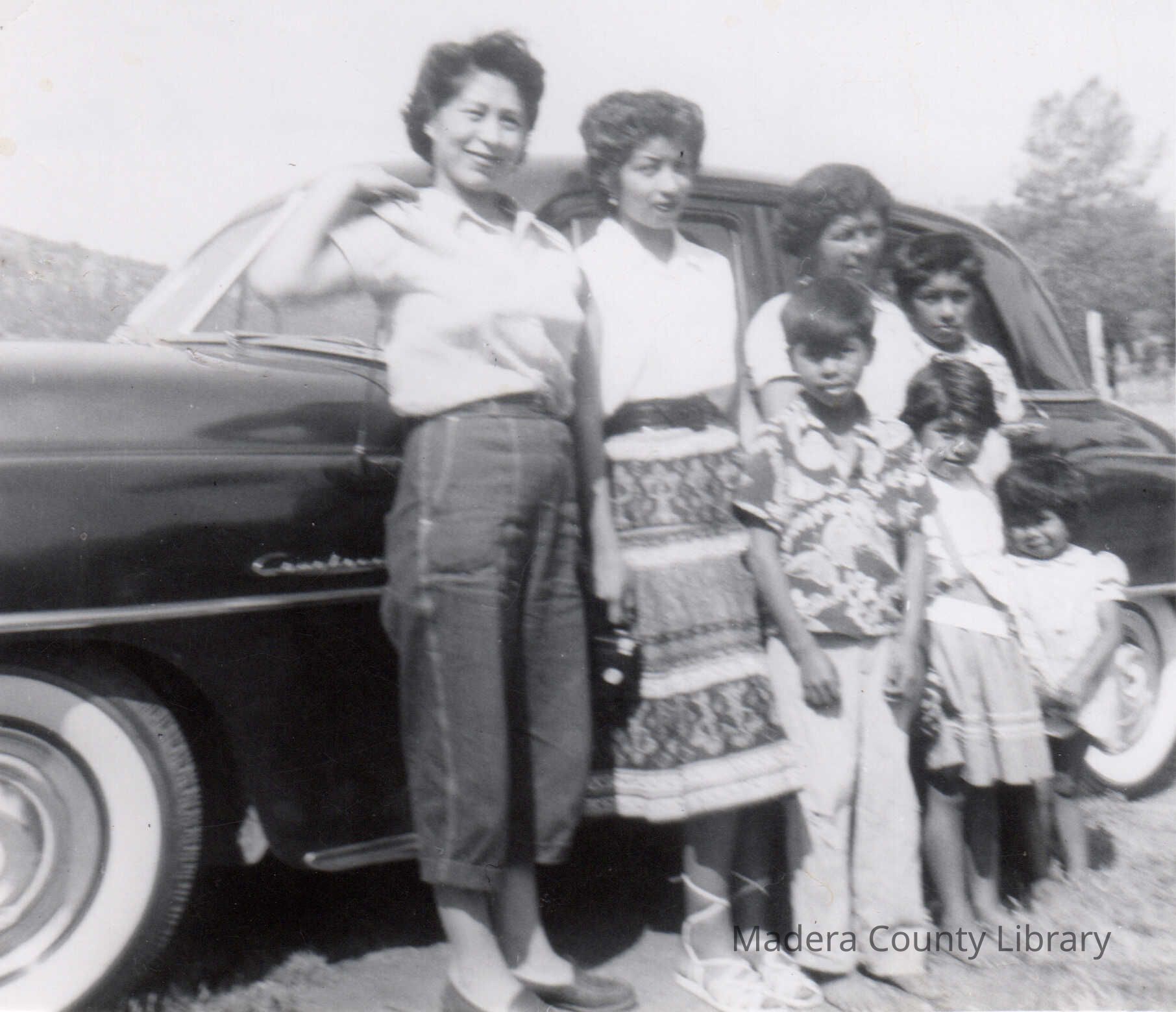 Left to Right: Rita Gonzales, Shirley Chenot, Mary Jane Chenot with grandchildren; Dennis, Wallace, Lynda and Laurie. Photo was taken in North Fork, Madera County, CA in June 1954.Photograph Details