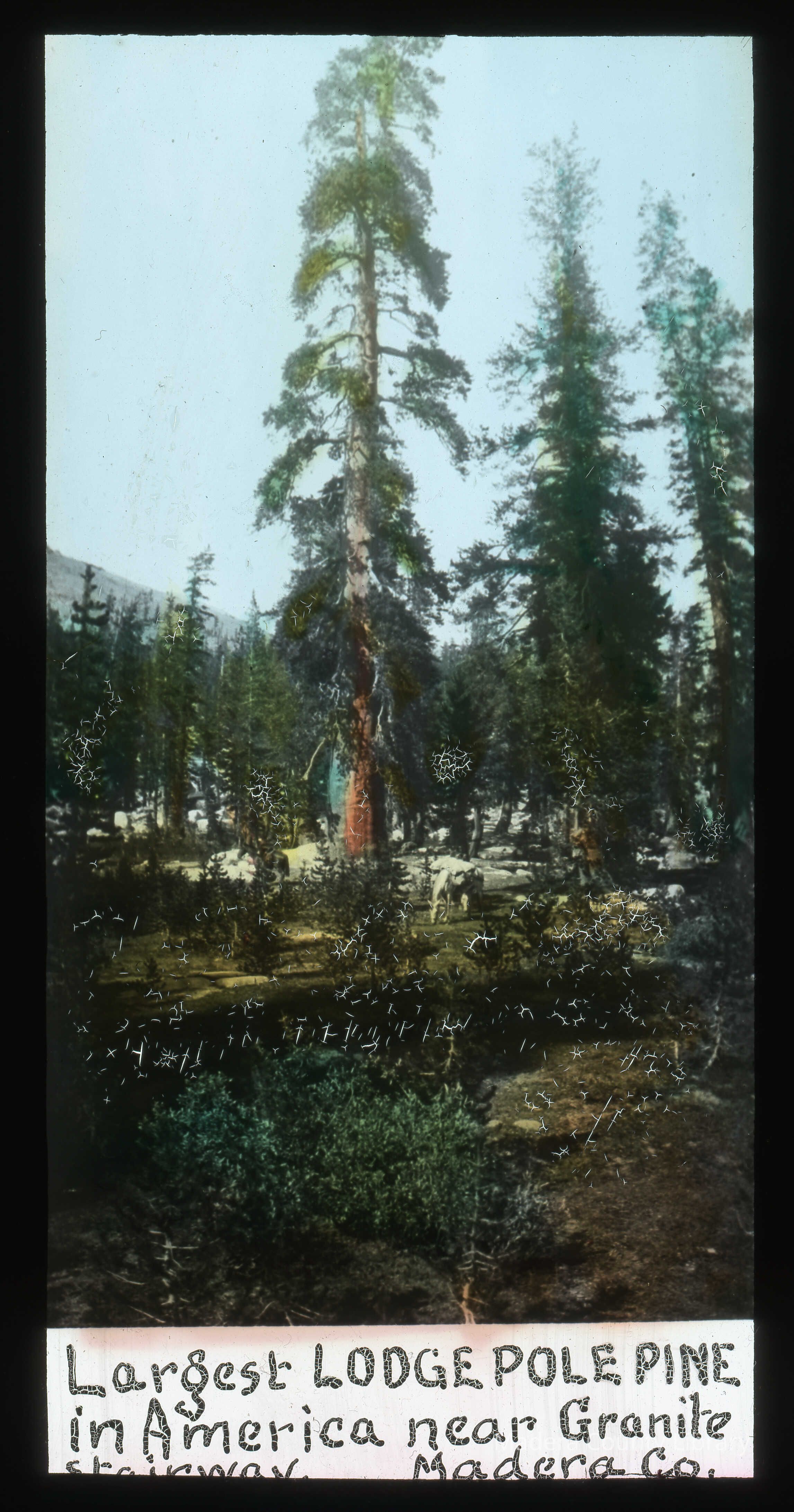 Largest Lodge Pole Pine grown in America. The tree was located near Granite Stairway which is located in Madera County.Photograph Details
