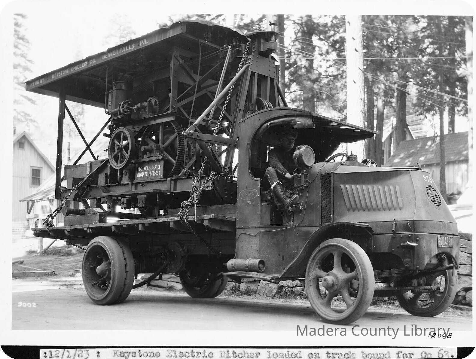 Keystone Electric Ditcher loaded on truck, bound for Camp #63.Photograph Details