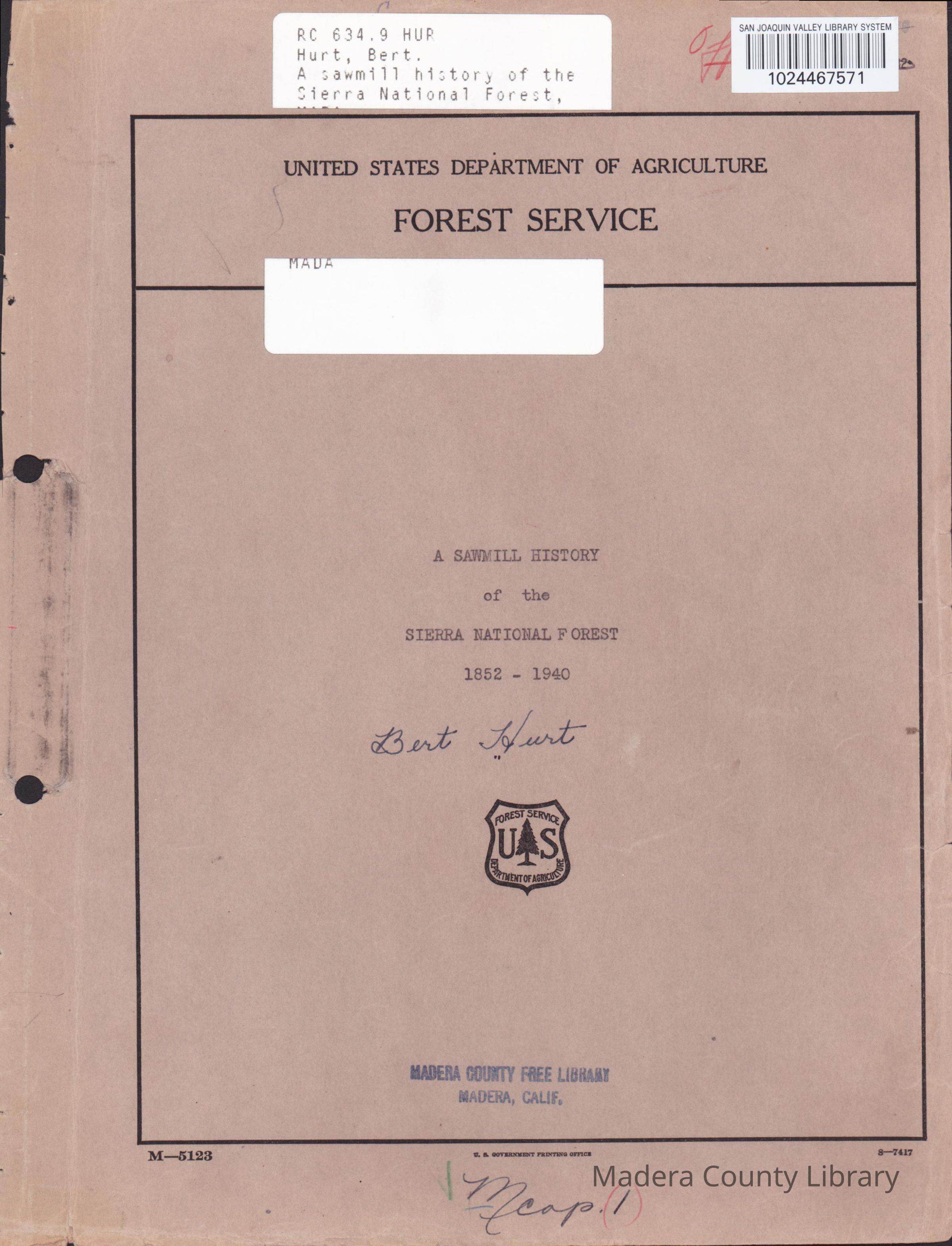 A Sawmill History of the Sierra National Forest, 1852-1940Entry/Object ID