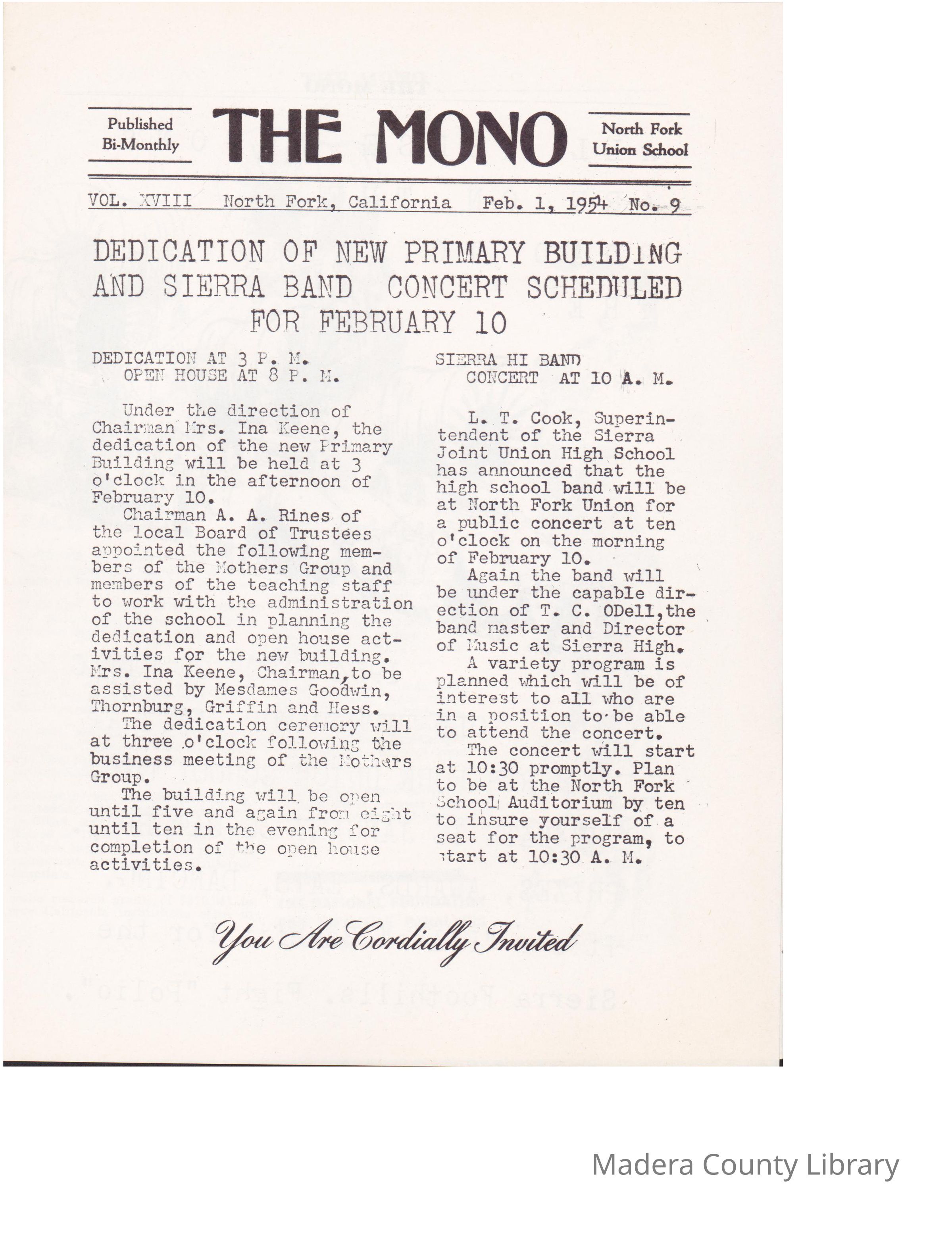 The Mono Feb 1 1954, no 9Description