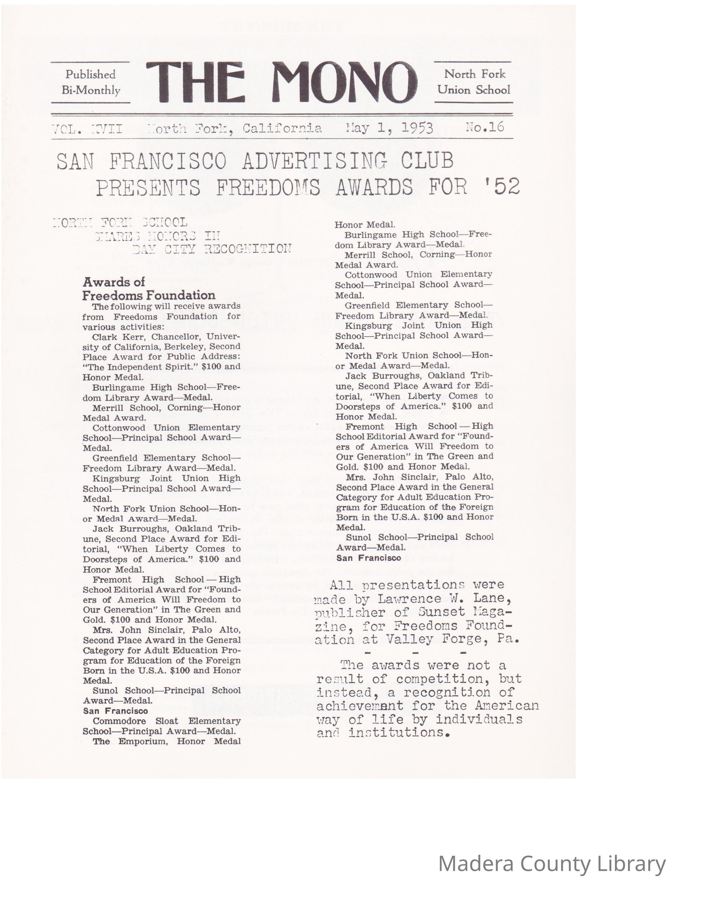 The Mono May 1 1953, no 16Description