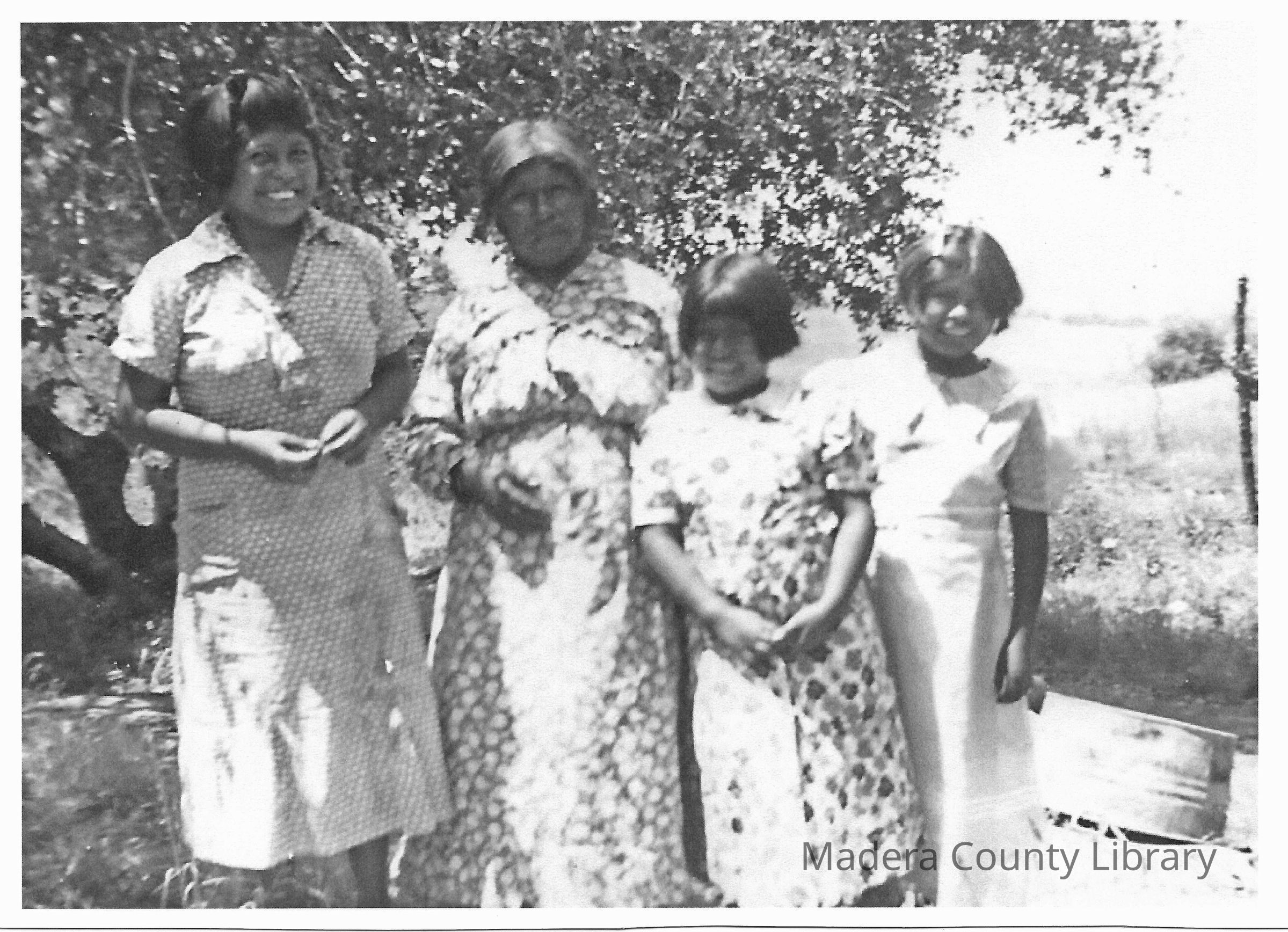 Taken at Picayune Rancheria in 1938, left to right: Ruby Roan, Ruby's Mother Emma Banjo and Emma's grand-daughters Katherine Arnold and Lillian ArnoldPhotograph Details