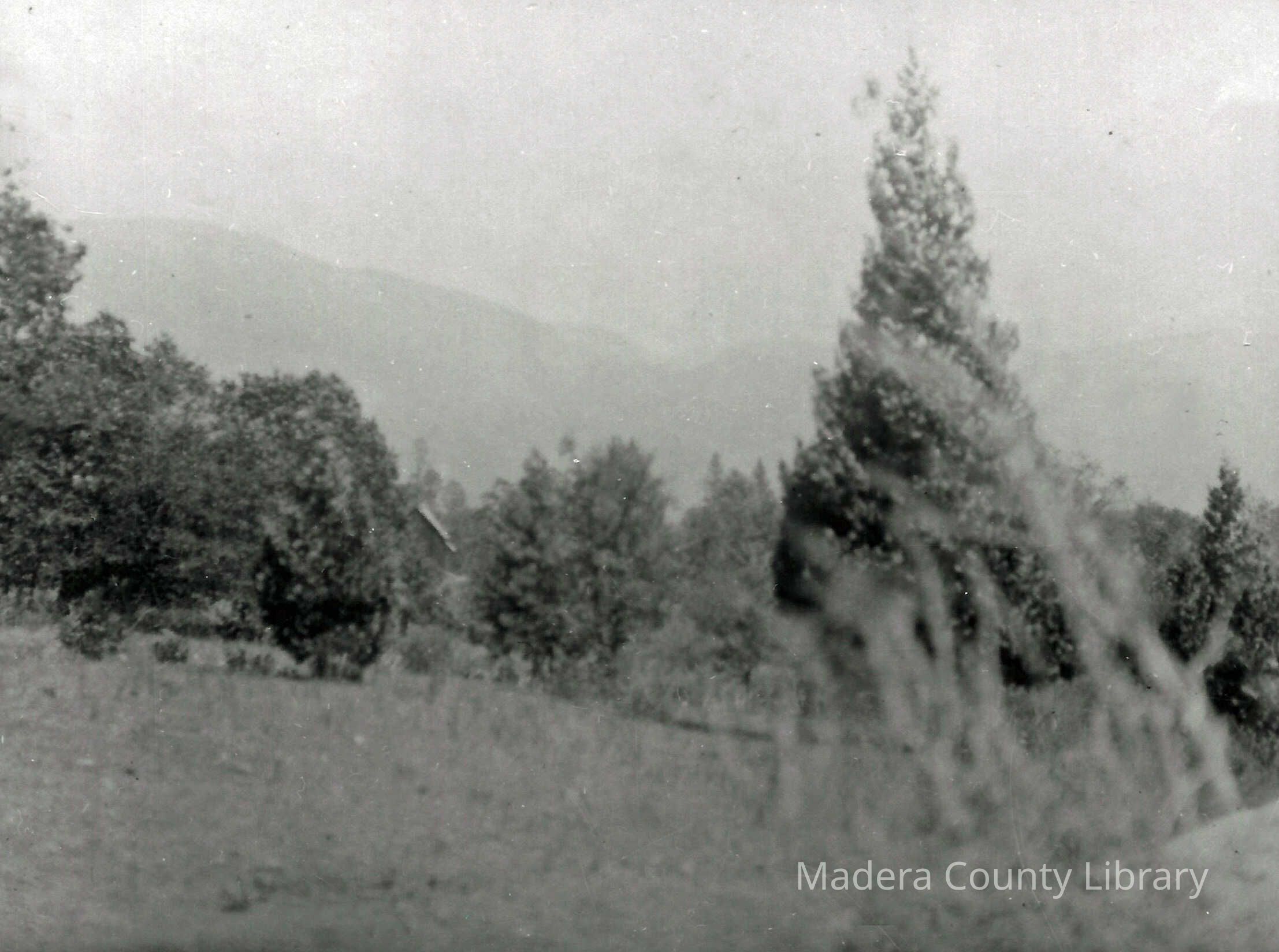 View of Soyakanim, or Kinsman Flat, looking East with Kaiser Peak in the background. . Joe Kinsman, a white settler, homesteaded and lived here with his wife, Mary Joaquin-Kinsman, North Fork Mono, and their children; Joe, Mary (Mollie) and Annie.Photograph Details