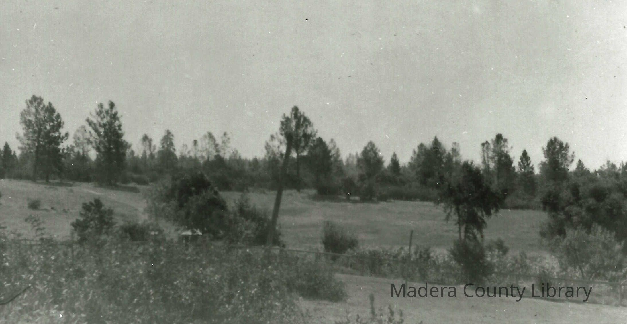 This photo reflects Ebehiwe Village, which was home to the Teaford Family in North Fork, Madera County. This view is looking East with Shuteye Peak shown in the distance. This was Mary Sharpton Teaford's home and the family called it the Green Place.Photograph Details