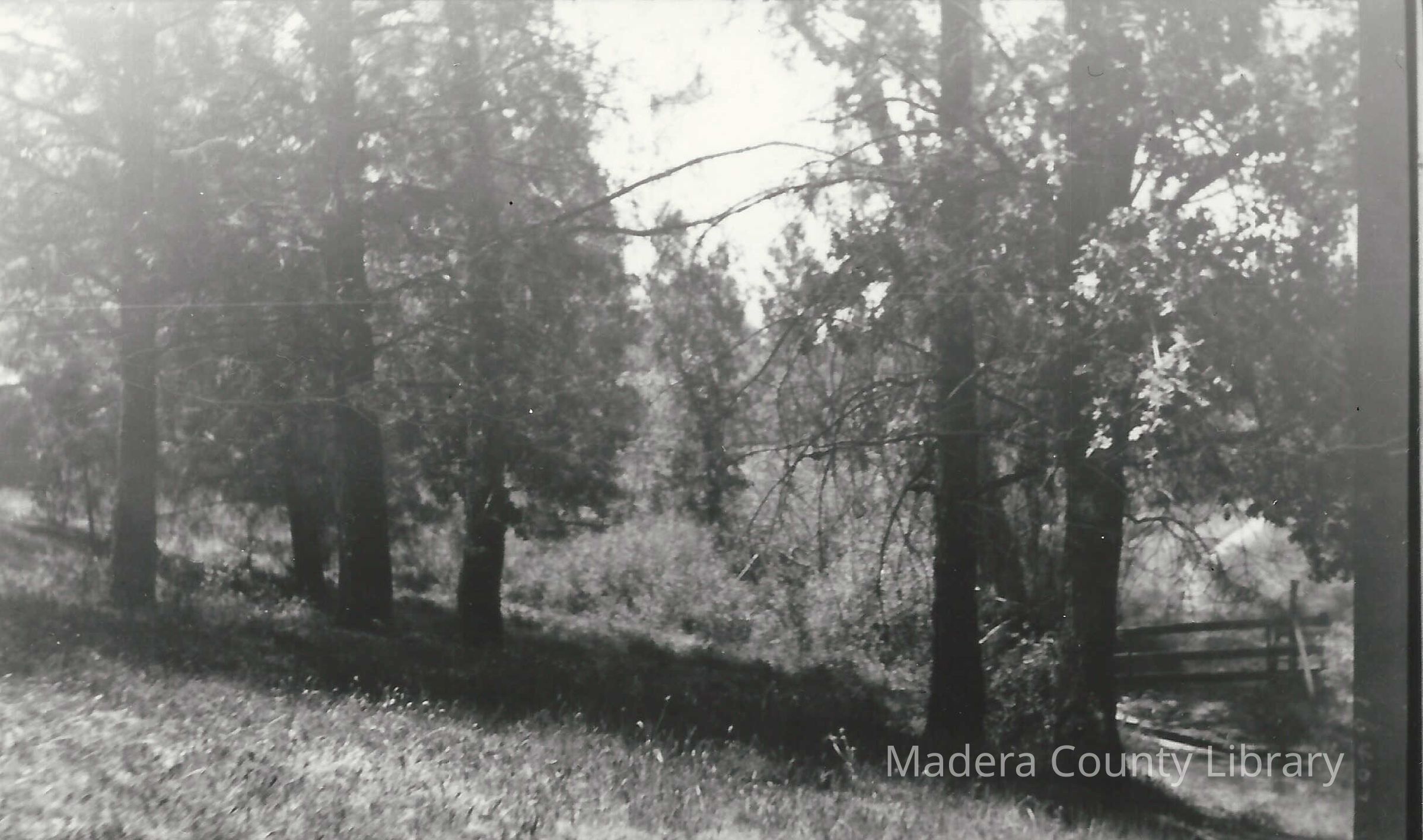 This photo provides a view of part of the forest that surrounded the Mission. In a 1920 report written by Julia Fraser, she mentions the valuable pine and manzanita trees that were located on the Mission grounds.Photograph Details