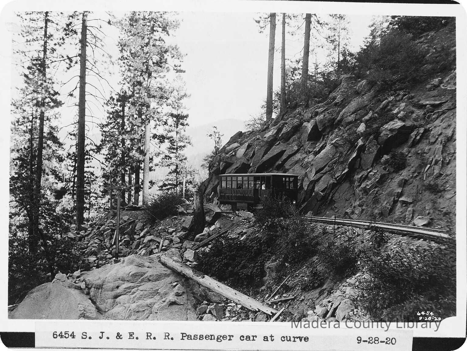 San Joaquin and Eastern Railroad Passenger Car at curve.Photograph Details