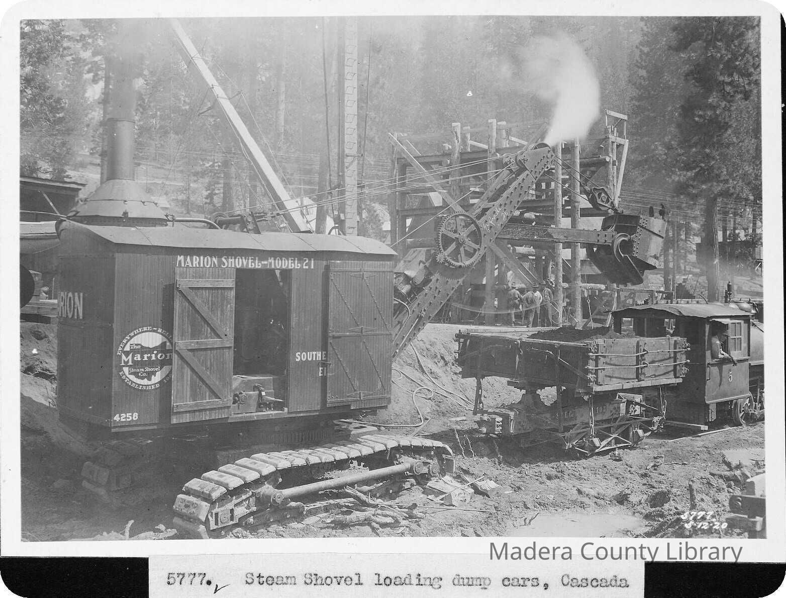 Marion Steam Shovel, Model 21, loading dump cars at Cascada.Photograph Details
