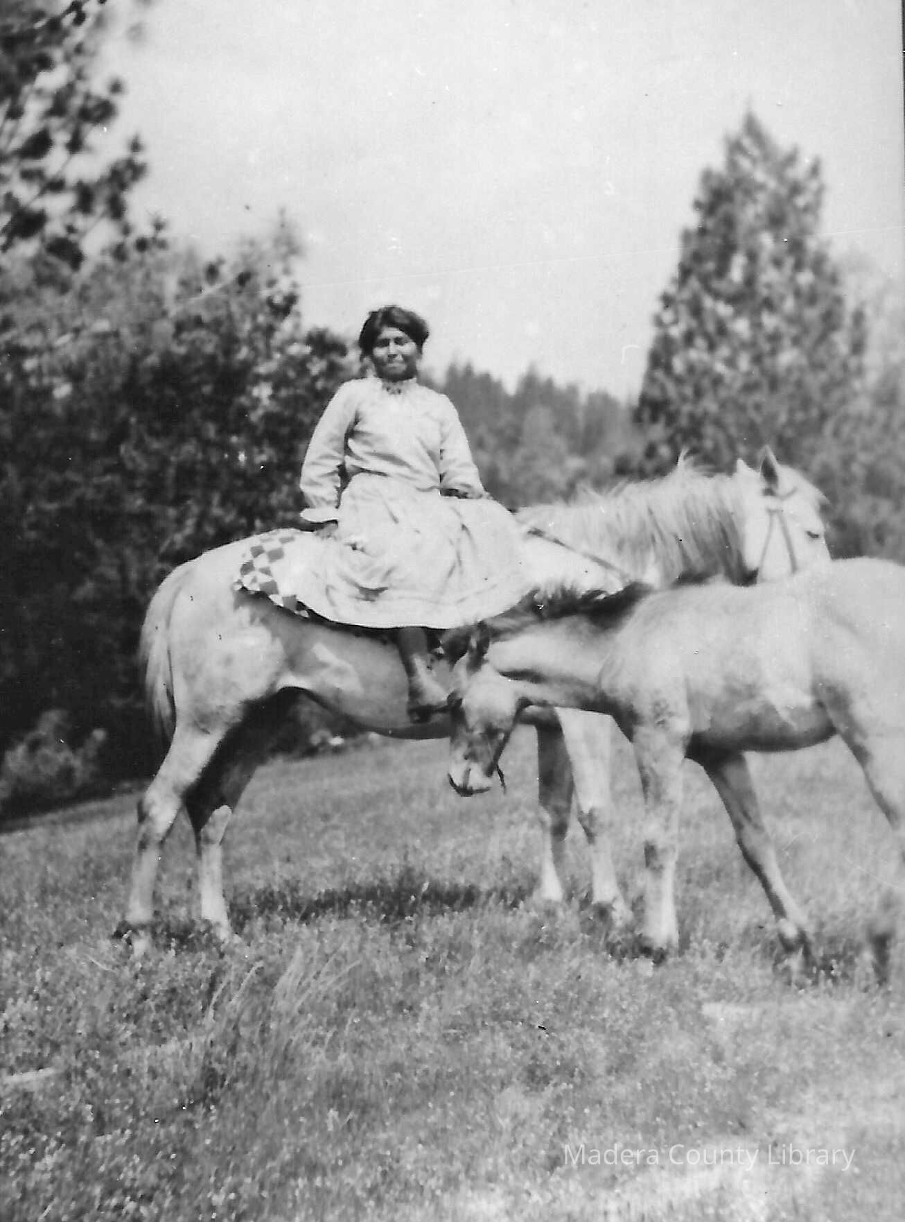 Young Indian girl on horseback, Madera County.Photograph Details