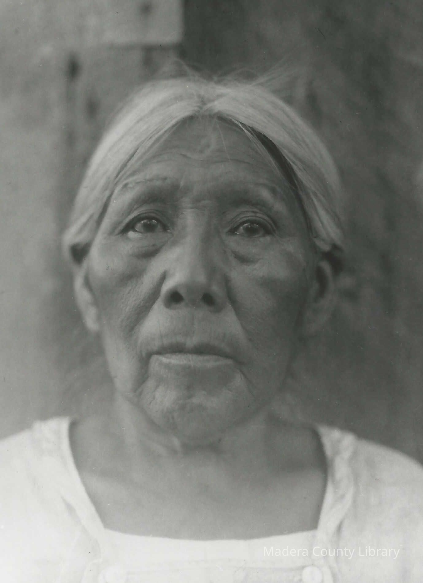 Sallie (Goodeye) Lewis, born in 1858, was a Chukchansi Yokuts woman who married a white man from North Carolina, Jonathon Lewis. Sallie's family lived on Deadwood Mountain in Madera County. Together, Sally and Jonathon had 10 children and after Jonathon died, ca. 1900, she provided for her children by doing the laundry in the lumber camps as well as picking grapes in Clovis, California.Photograph Details