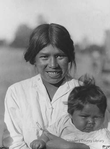 Nellie (Goodeye)Graham was a Chukchansi Yokutst woman and is shown here in 1922 holding her son, Soloman. Nellie married Willie Graham and together they remained in Coarsegold and raised their family.Photograph Details