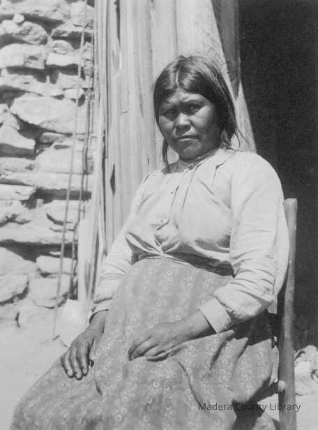 Stella Dandy is shown in this photograph, taken ca. 1910. Stella's husband was James Dandy, a North Fork Mono Indian.Photograph Details