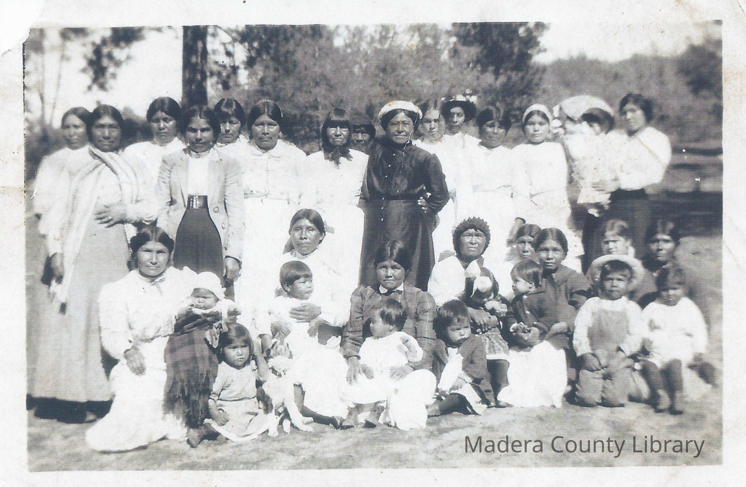 Group of women and children at North Fork Presbyterian Indian Mission.