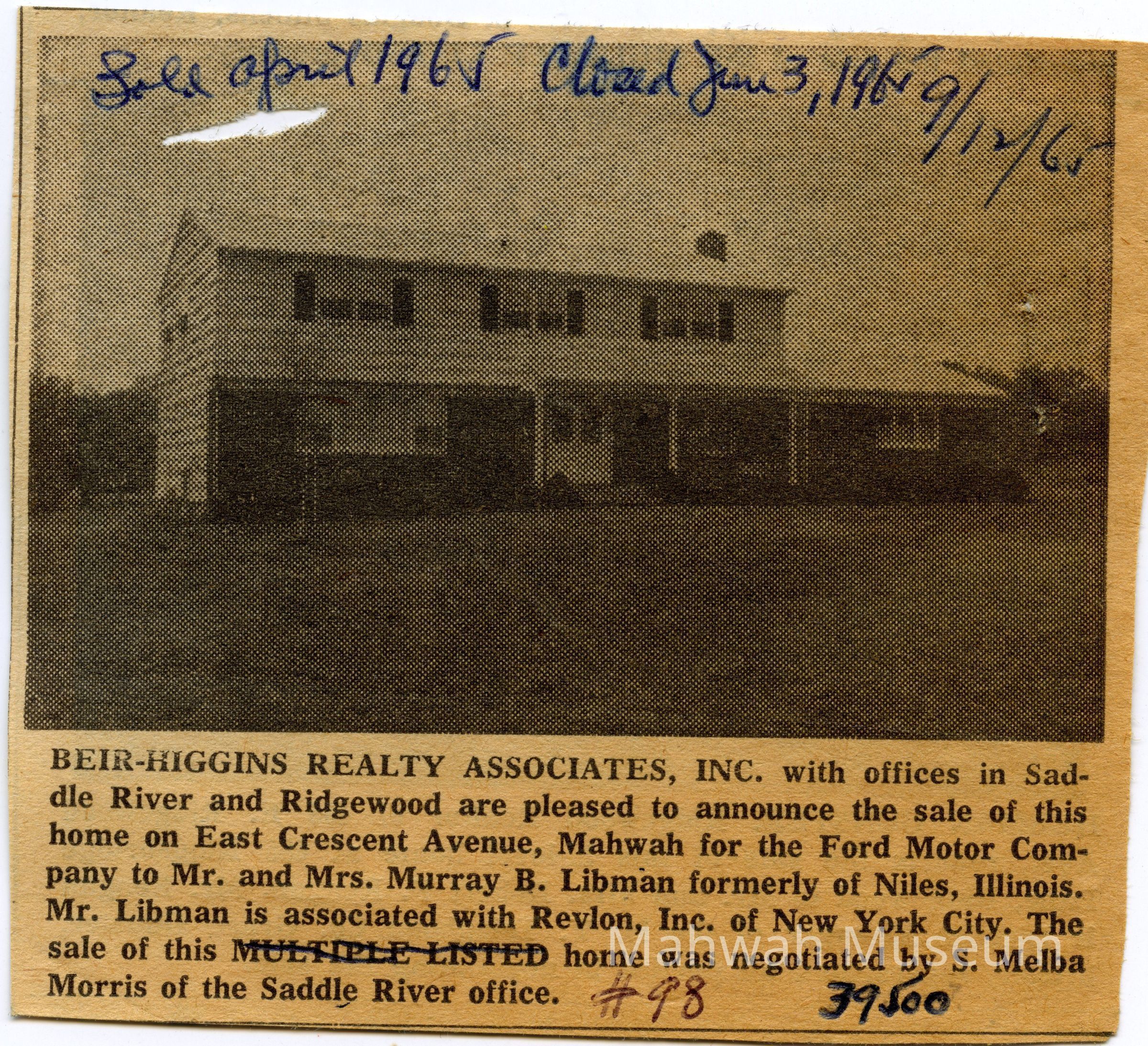 Photograph of house at 1021 (new 98) East Crescent Ave in Mahwah, NJ