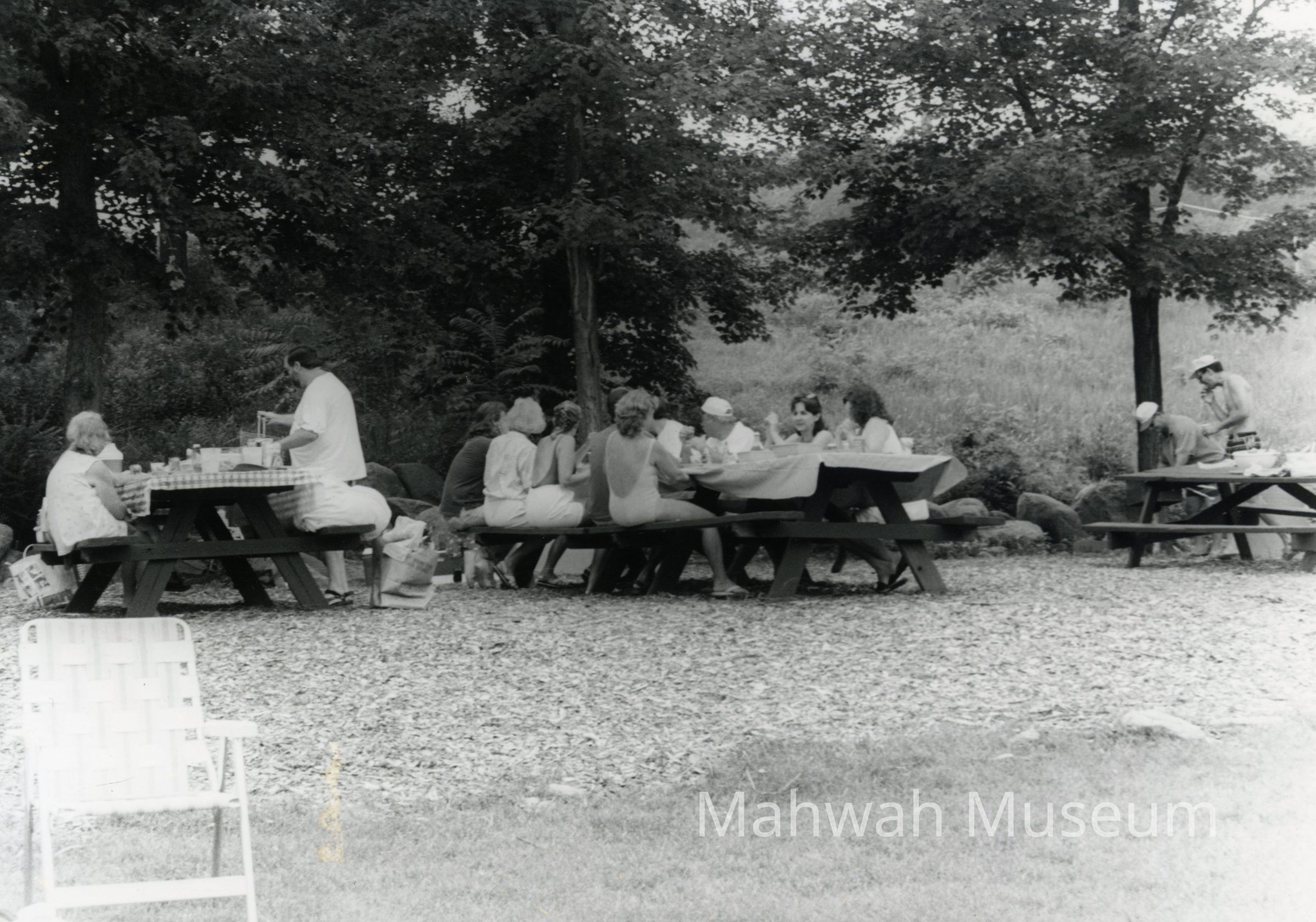 People eating at picnic tables at Mahwah PoolPhotograph Details