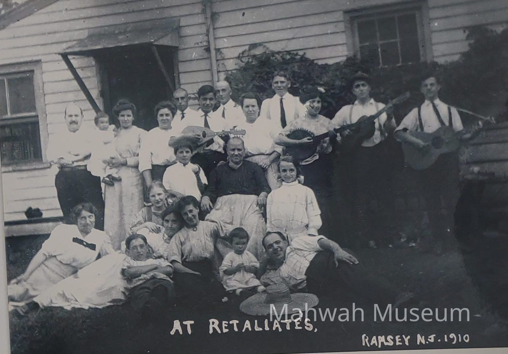 Large family group photo of the Retaliate family outside their farm house.Photograph Details