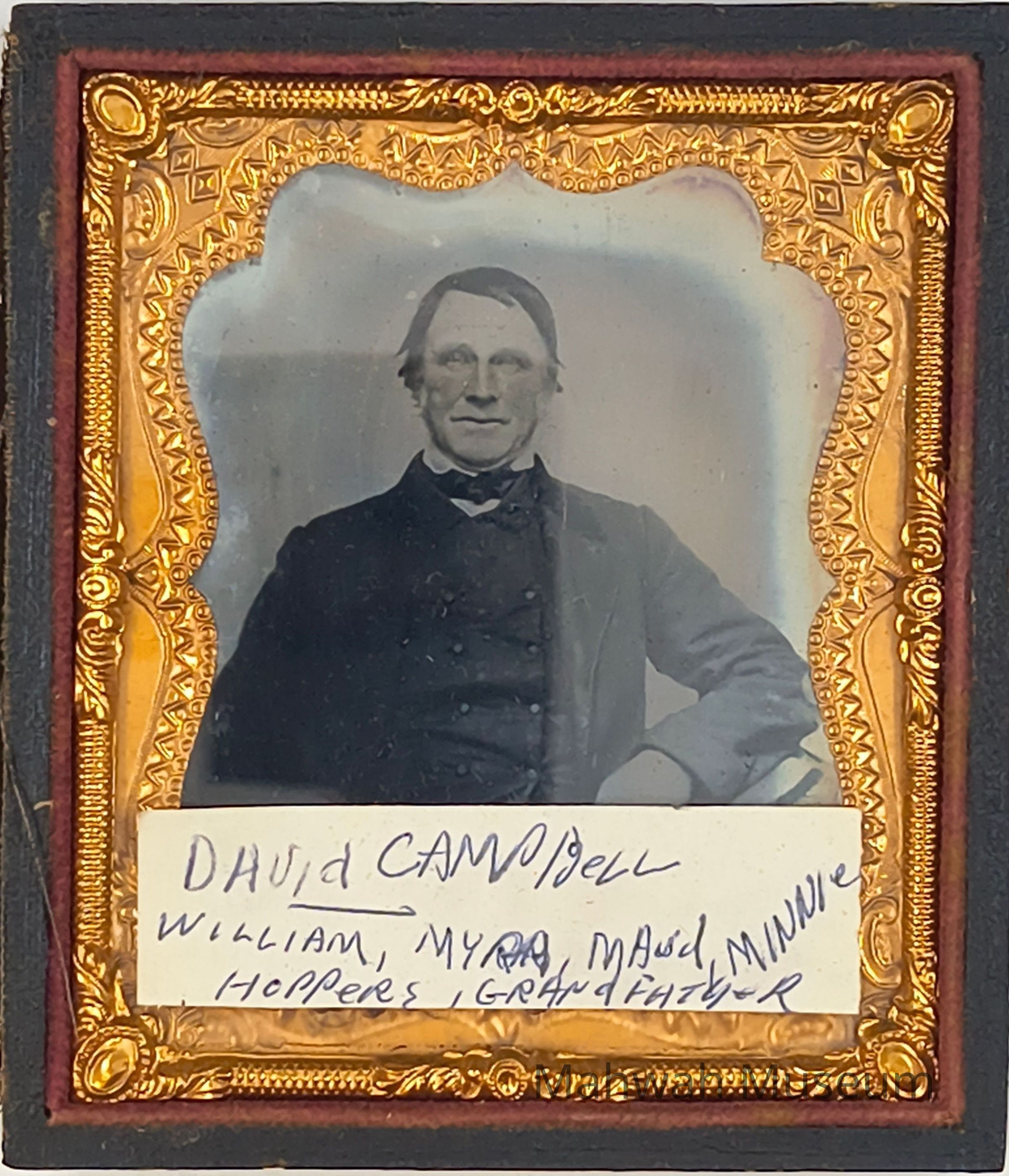 Tintype in fancy frame of David Campbell the father of Minnie Campbell Hopper.Photograph Details