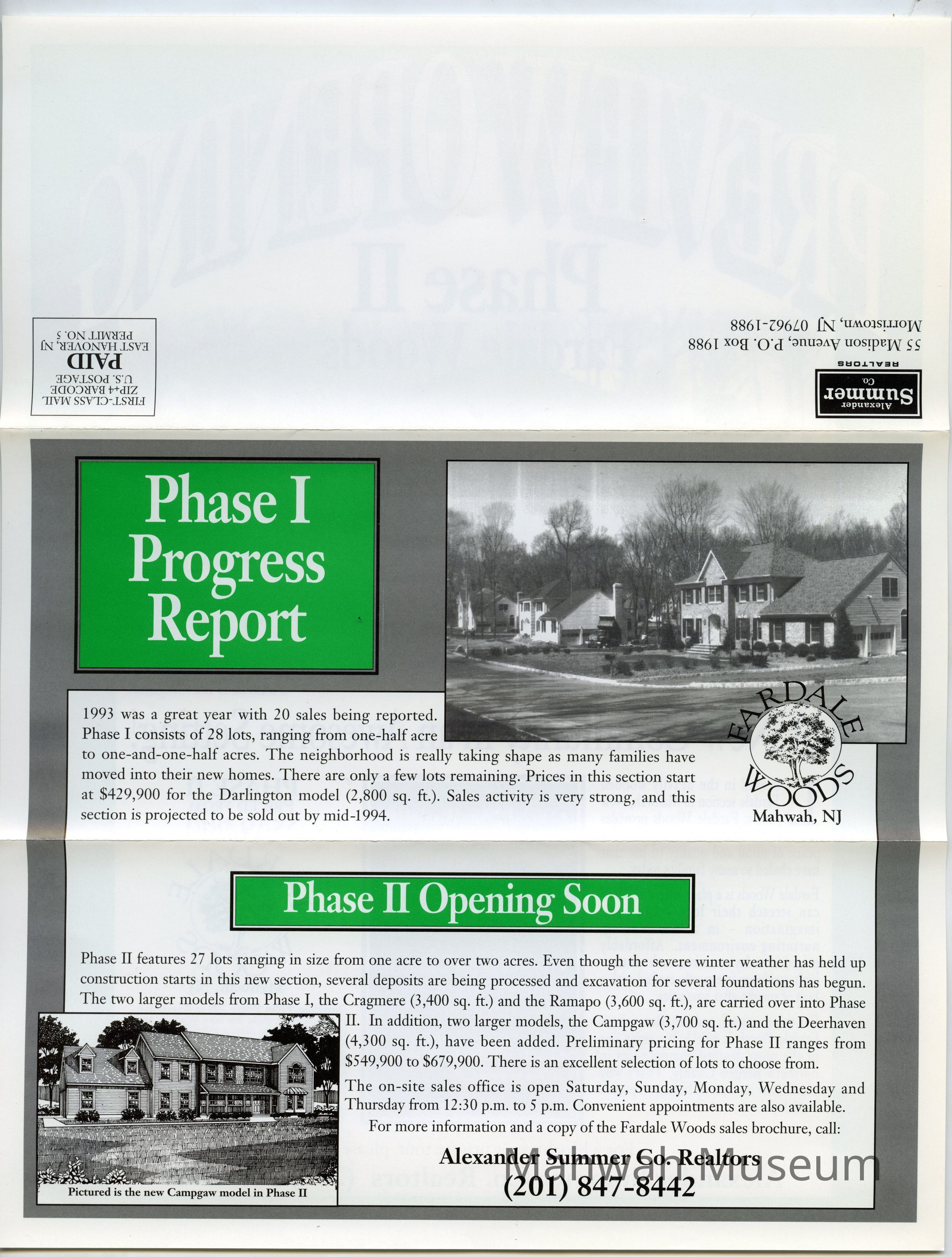 Sixteen-page brochure for "Fardale Woods" housing development in Mahwah, NJCollection