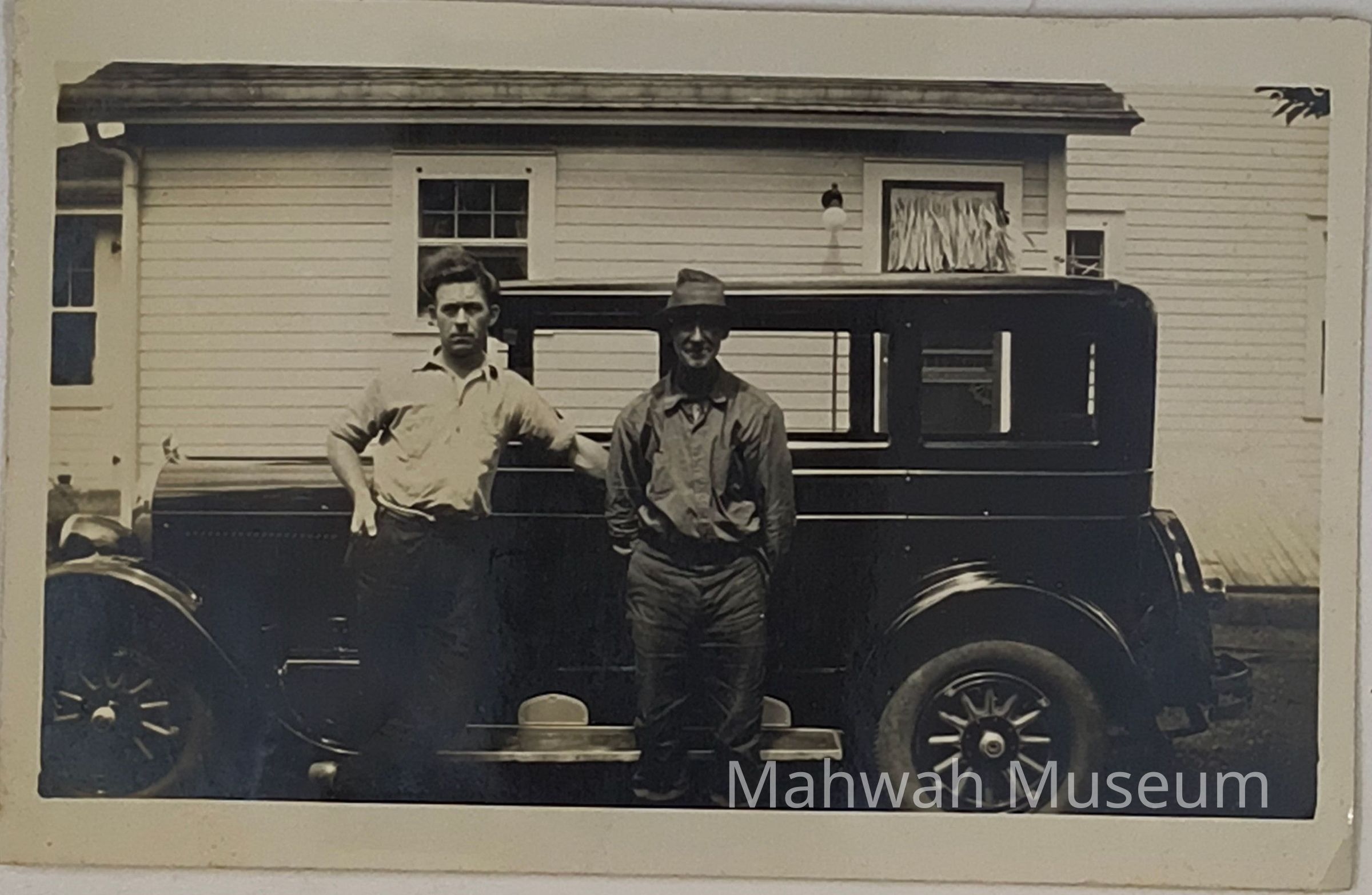 Clarence Wanamaker and Abe Van Horn at the Wanamaker Farm on Ramapo Valley Road, with Model T in the backgroundPhotograph Details