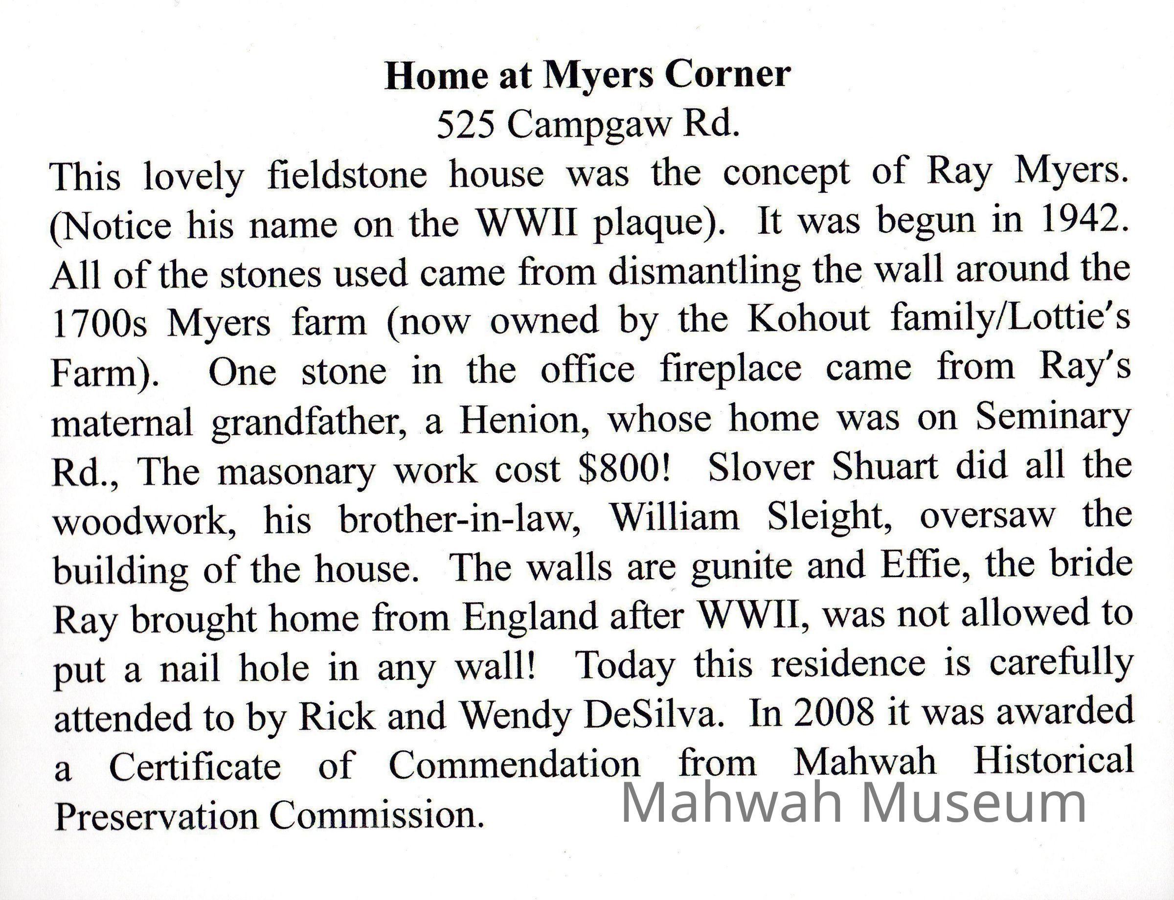 Home at Myers Corner. Caption in exhibit is 2013.09.07.255A. From Neighborhoods of Mahwah Exhibit Panel 2013.09.07.237.Photograph Details
