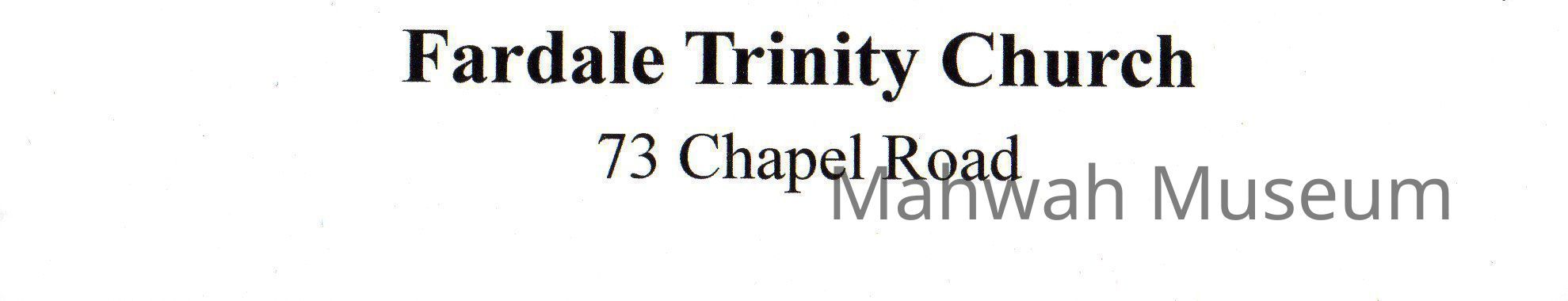 Fardale Trinity Church. Captions in exhibit are 2013.09.07.029A and 2013.09.07.029B. From Neighborhoods of Mahwah Exhibit Panel 2013.09.07.232.Photograph Details