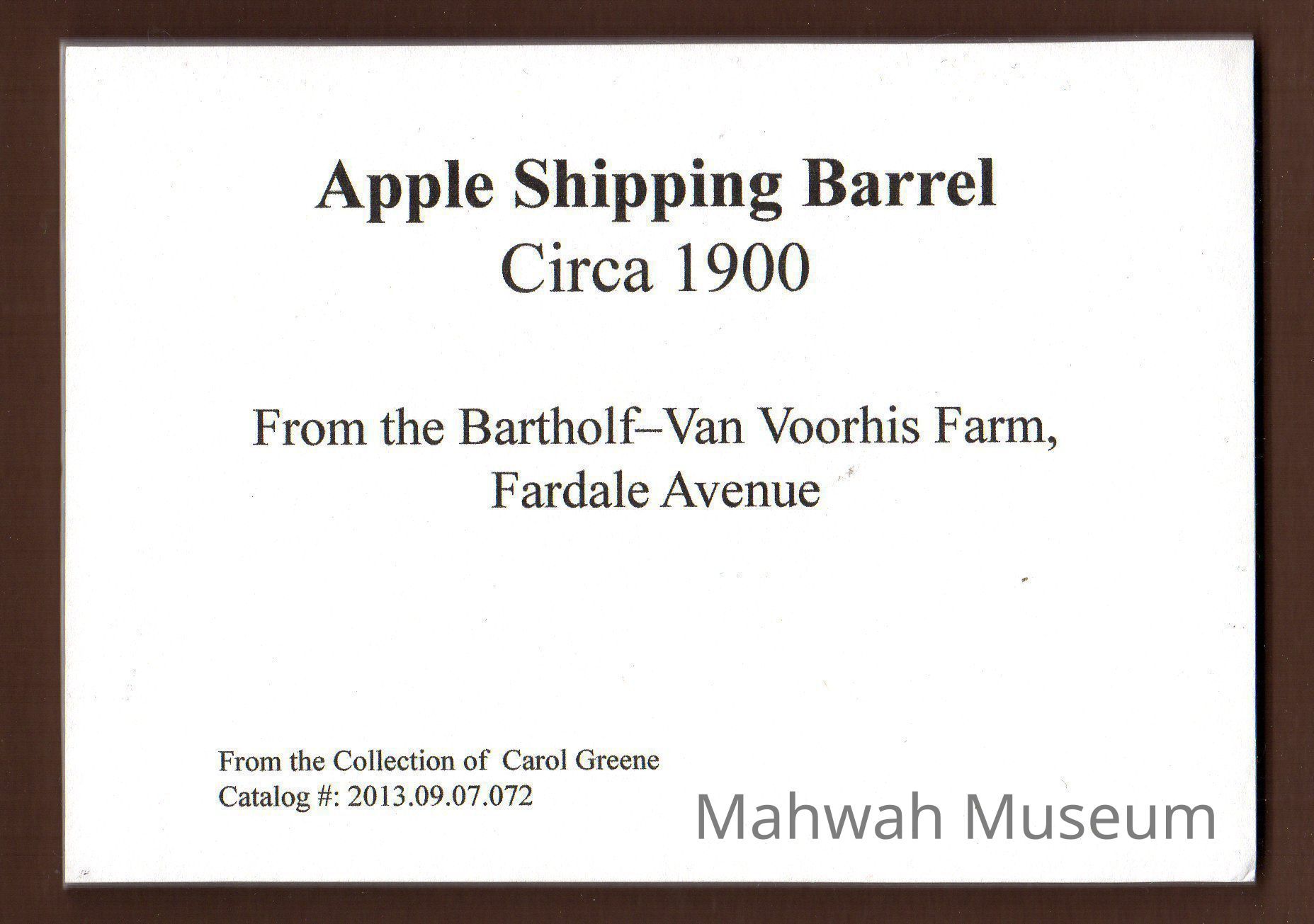 Apple Shipping Barrel. Caption in exhibit is 2013.09.07.072A.Collection