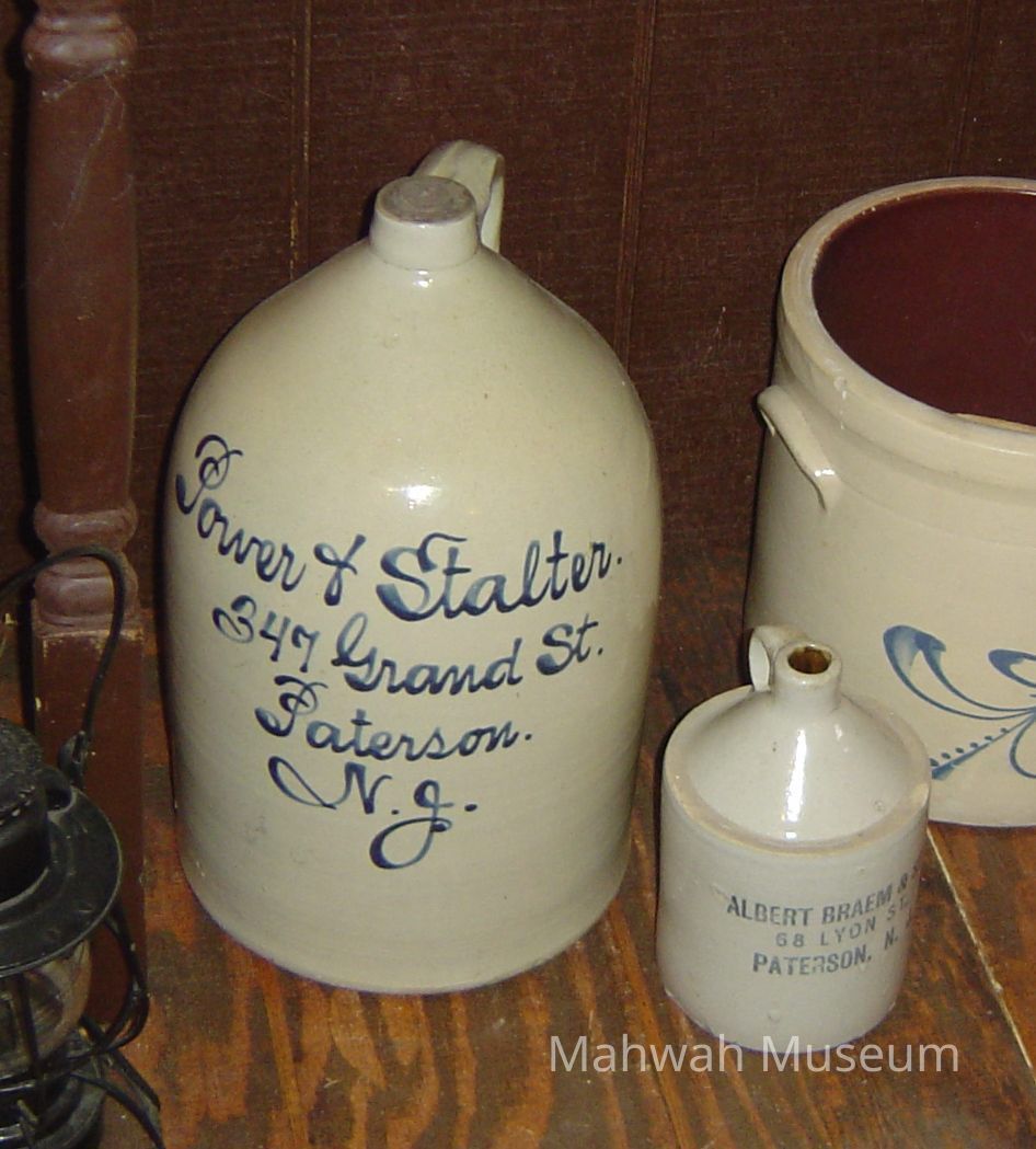Paterson Jug from the Bartholf Van-Voorhis Farm. Contains captions Paterson Jug, Newark Jug, Rectangular Produce Baskets, and Small Produce Baskets.Collection