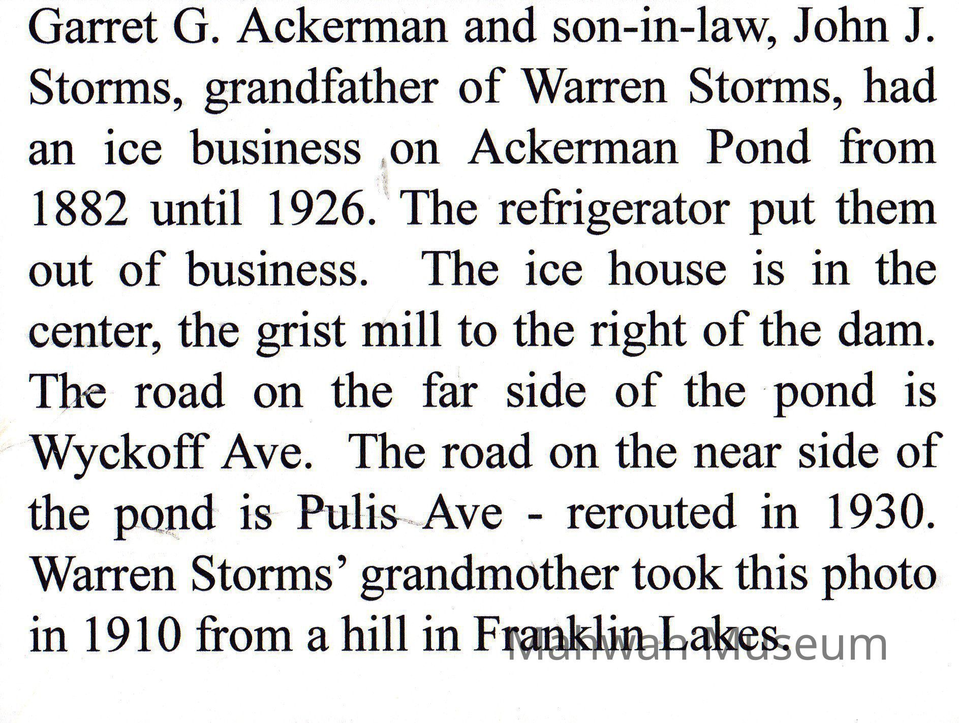Garrett G. Ackerman and John J. Storms Ice Business. Caption in exhibit is 2013.09.07.113A. From Neighborhoods of Mahwah Exhibit Panel 2013.09.07.212.Photograph Details