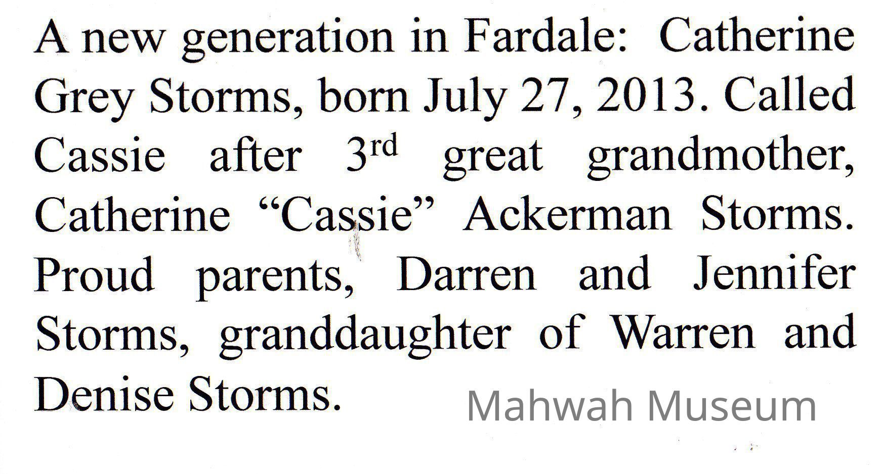Catherine Grey Storms. Caption in exhibit is 2013.09.07.290A. From Neighborhoods of Mahwah Exhibit Panel 2013.09.07.220.Photograph Details