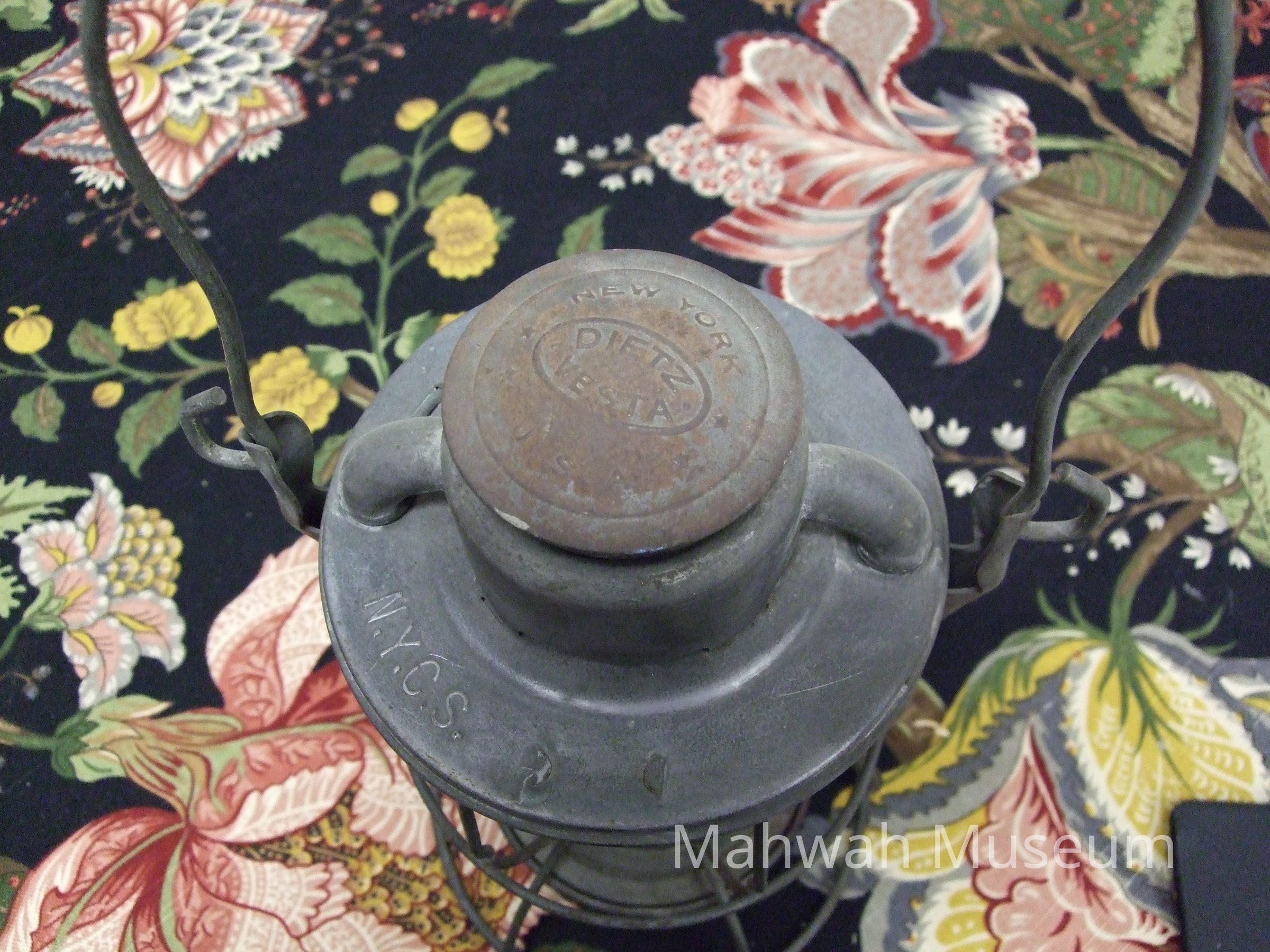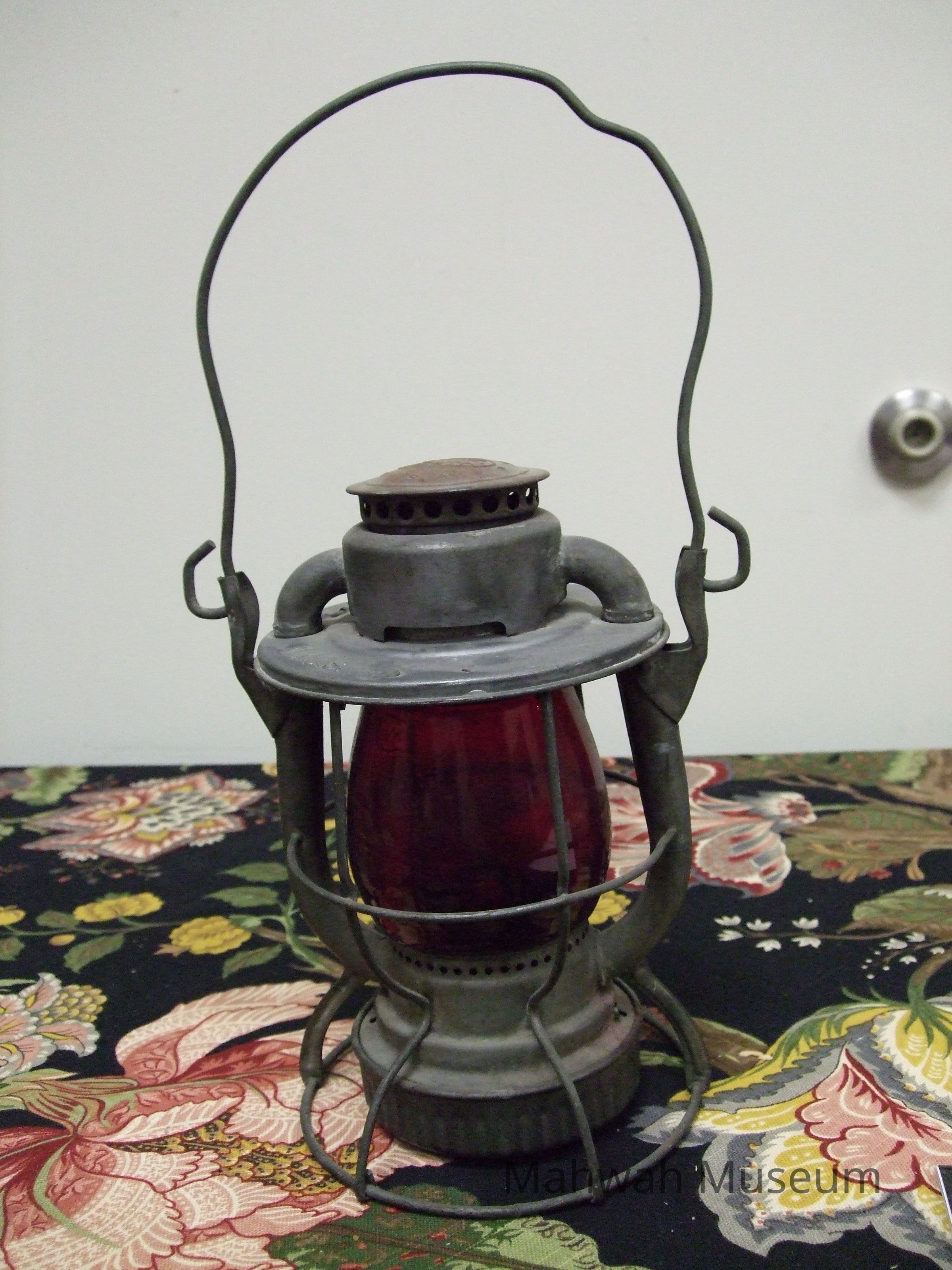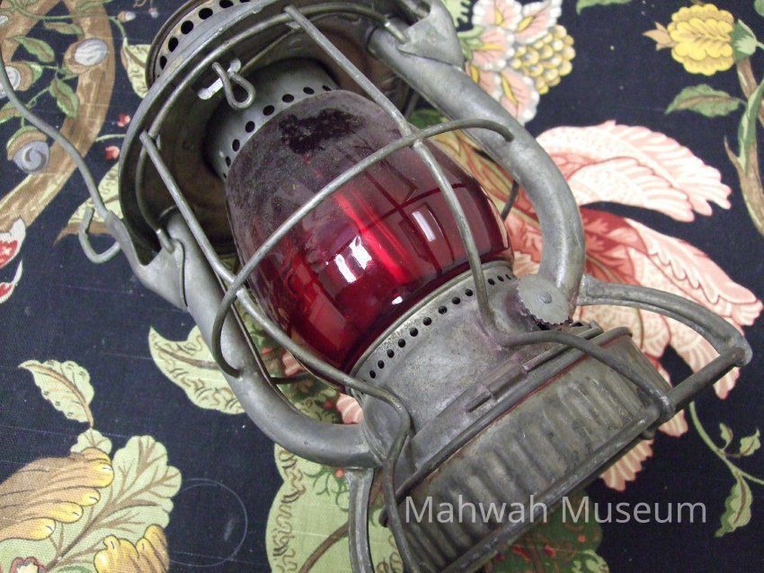 NY Central System Lantern; made by Adlak - has inscribed in the NYCS in the globe and the tin. Globe is red glass.Collection