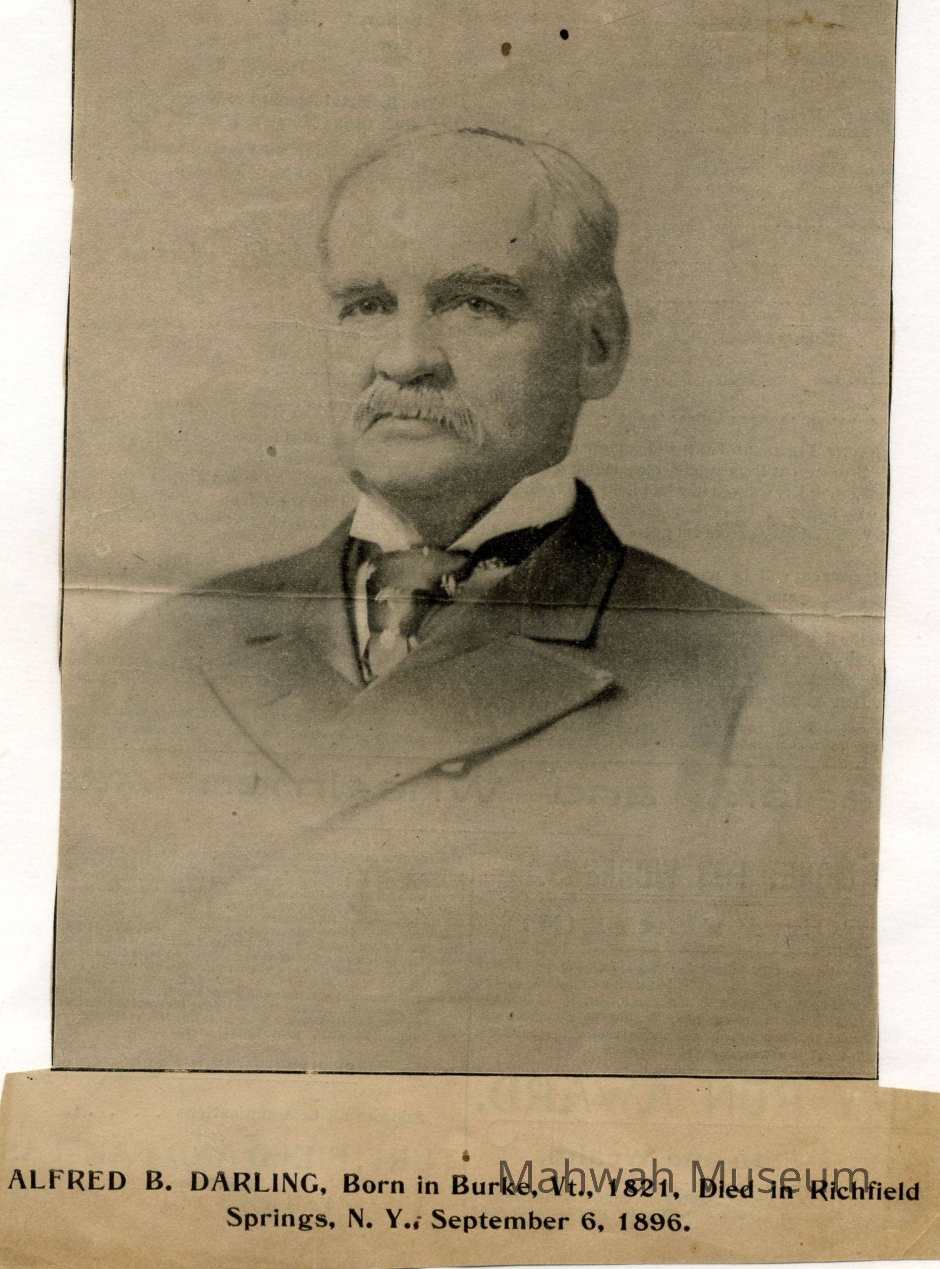 Alfred B. Darling, Born in Burke, VT, 1821, Died in Richfield Springs, NY, September 6, 1896Photograph Details