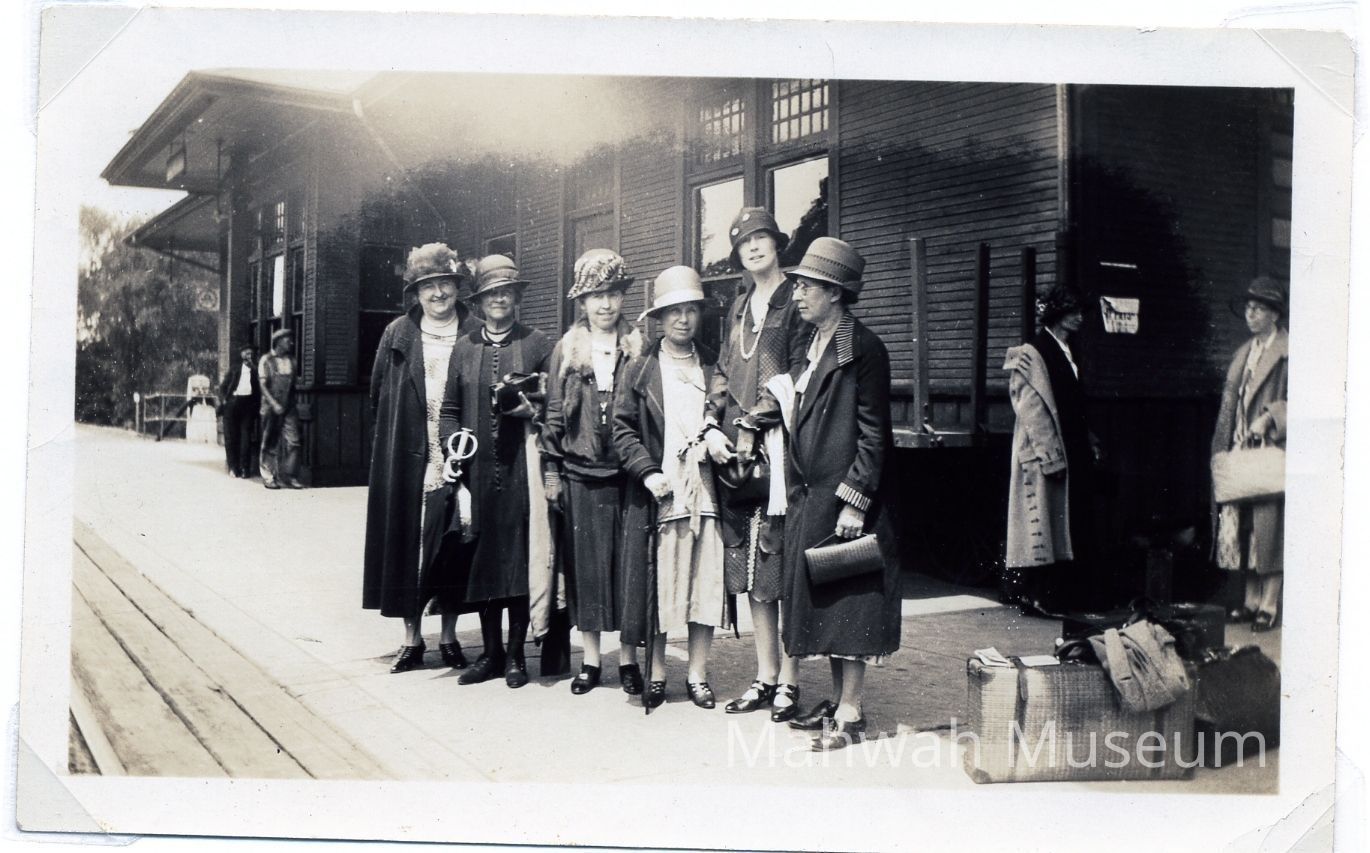 Annie Winter (3rd from left) with group at Northfield station, 1926Photograph Details