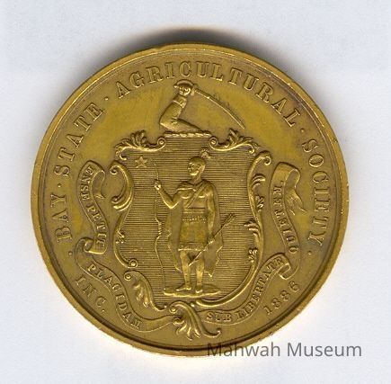 Photo of a gold medal from the Bay State Agricultural Society, won by Havemeyer livestockPhotograph Details