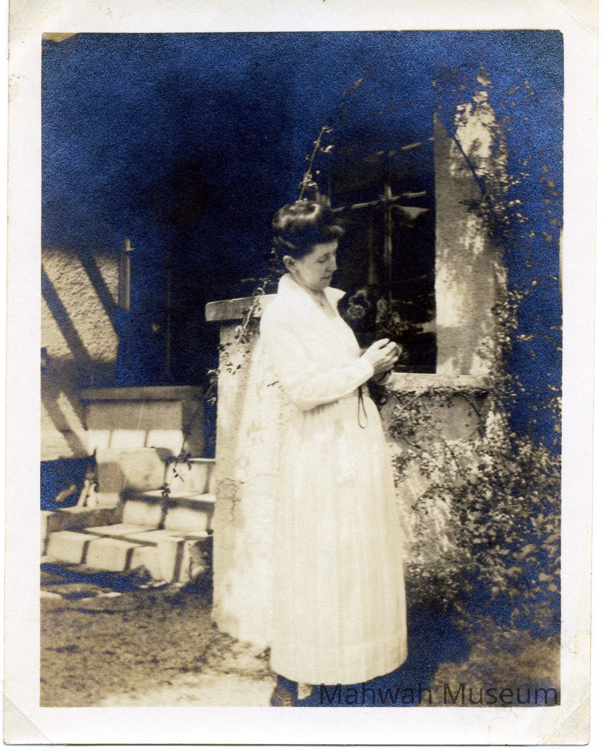 Annie Winter with dog (side view ) in front of Winter residence, MahwahPhotograph Details